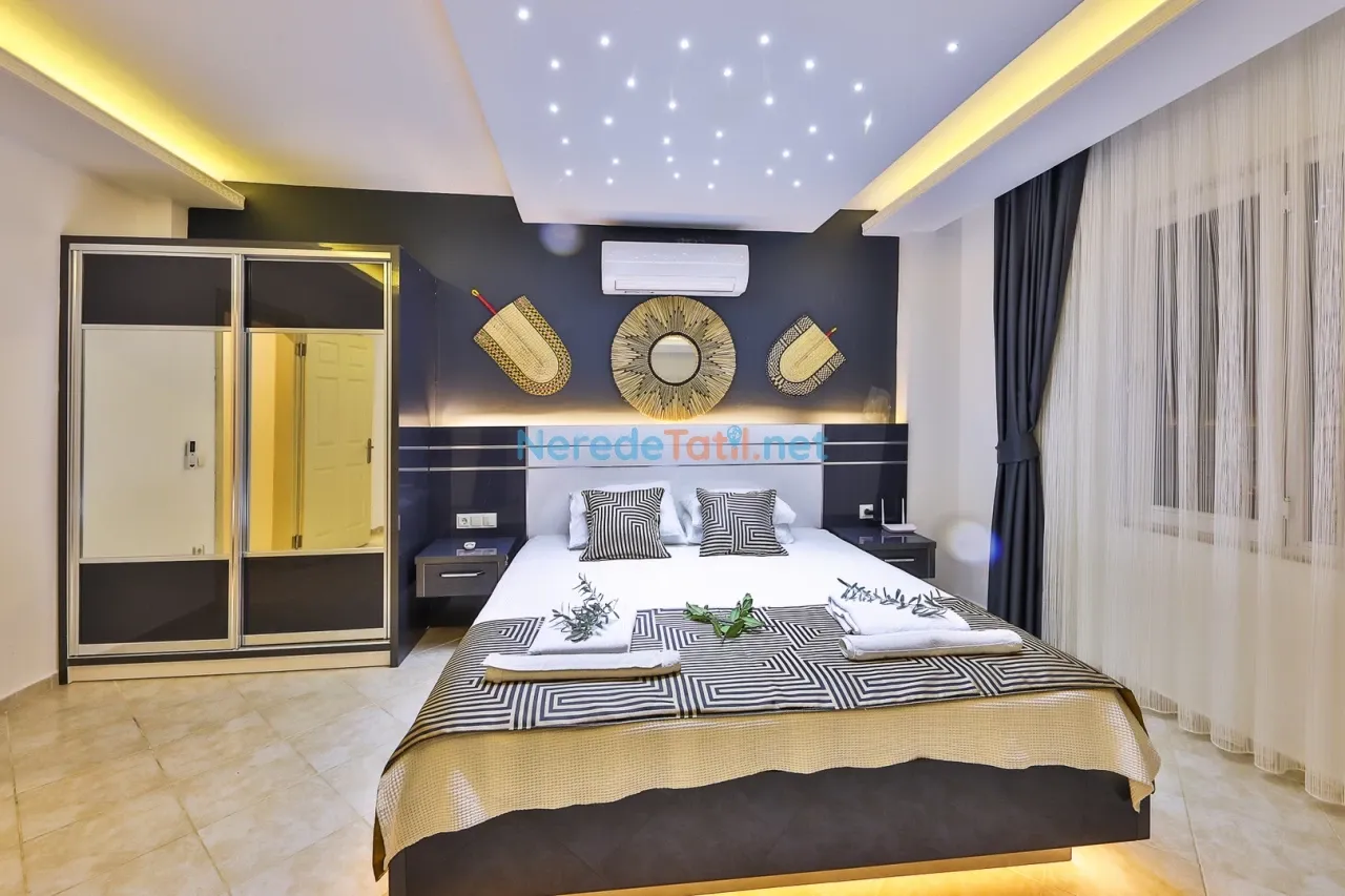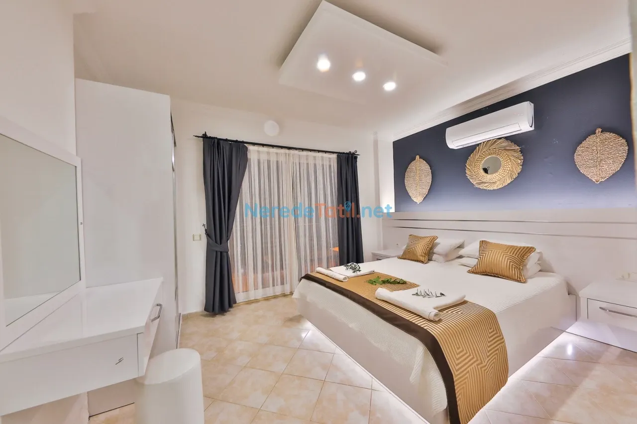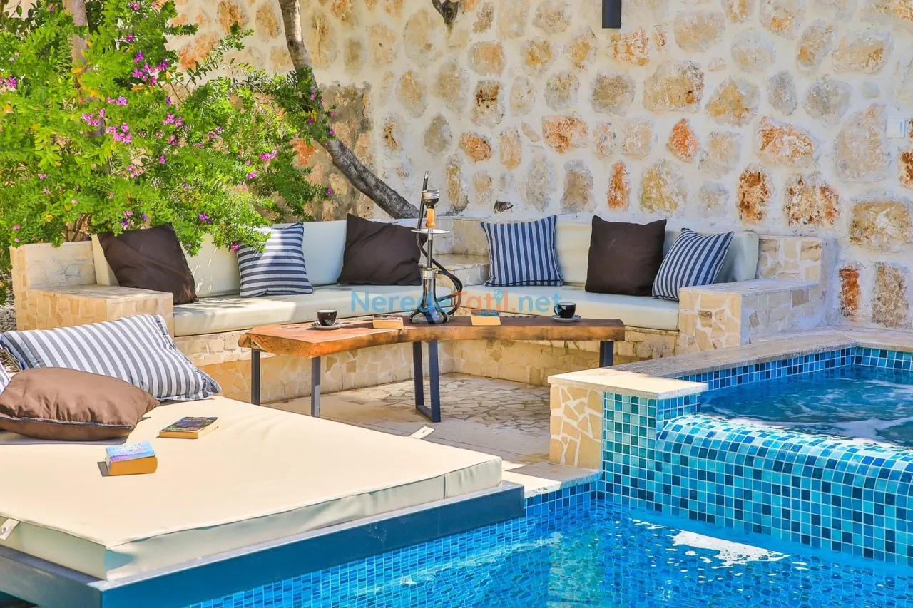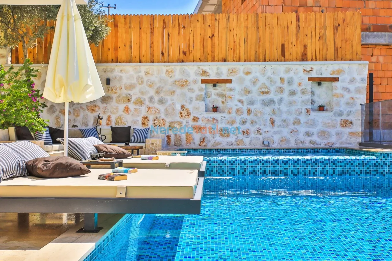 Kızıltaş'ta bulunan bu lüks villa, özel havuz ve deniz manzarası ile konuklarına huzurlu bir tatil sunuyor. Villada üç yatak odası ve üç banyo bulunmaktadır. İki çift kişilik ve iki tek kişilik yatağı sayesinde, altı kişiye kadar konaklama imkanı sağlar.