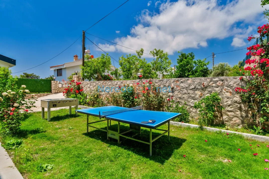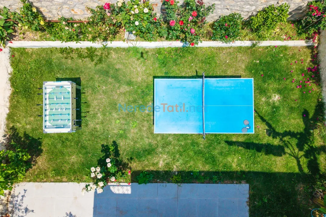 Villada, jakuzili bir dinlenme alanı, barbekü için uygun bir BBQ - mangal alanı ve geniş bir bahçe bulunmaktadır. Ayrıca, konforunuz için ütü ve saç kurutma makinesi gibi ev gereçleri de mevcuttur. Araçlarınızı güvenle bırakabileceğiniz bir otopark ve eğlenceli vakit geçirebileceğiniz langırt, masa tenisi ve oyun alanı da sunulan olanaklar arasında yer alır.