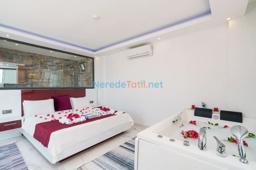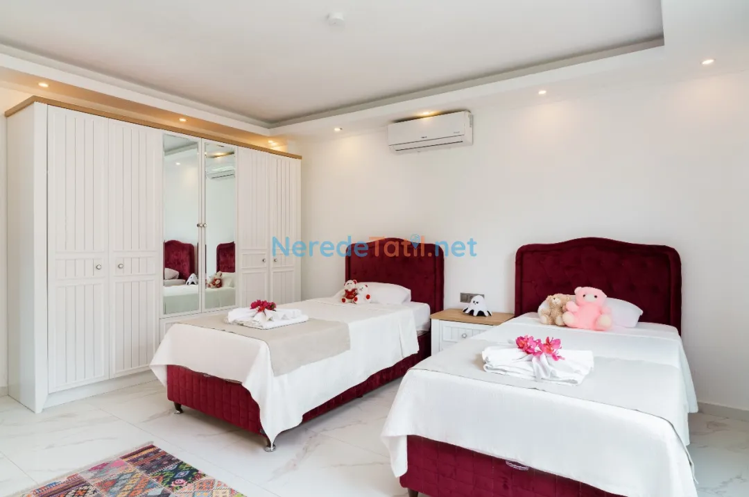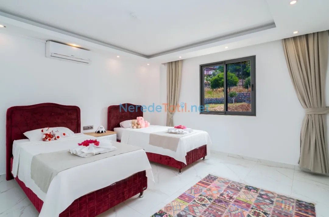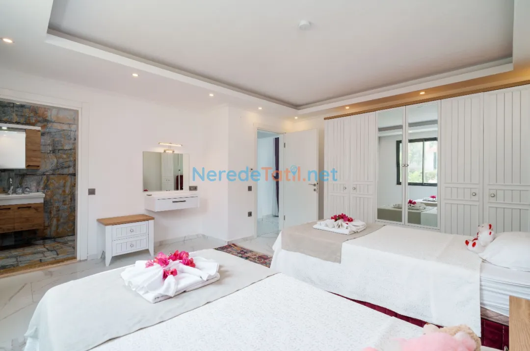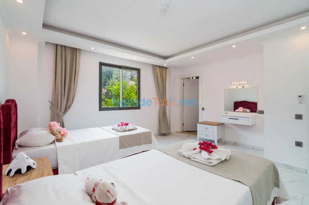 Akbel'in huzur veren doğasında, muhafazakar tatil severler için ideal bir seçenek olan bu lüks villa, özel havuz ve deniz manzarası ile eşsiz bir deneyim sunar. Villa, 4 kişilik konuk kapasitesi ile üç yatak odası ve iki banyoya sahiptir. Yatak odalarında bir çift kişilik ve iki tek kişilik yatak bulunmaktadır. Korunaklı havuzu 4 metre genişliğinde, 8 metre uzunluğunda ve 1.5 metre derinliğindedir.