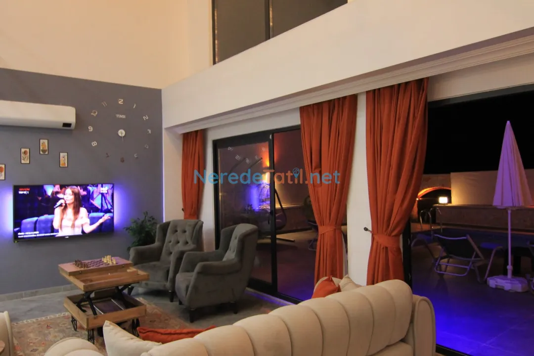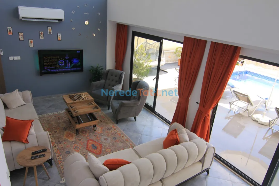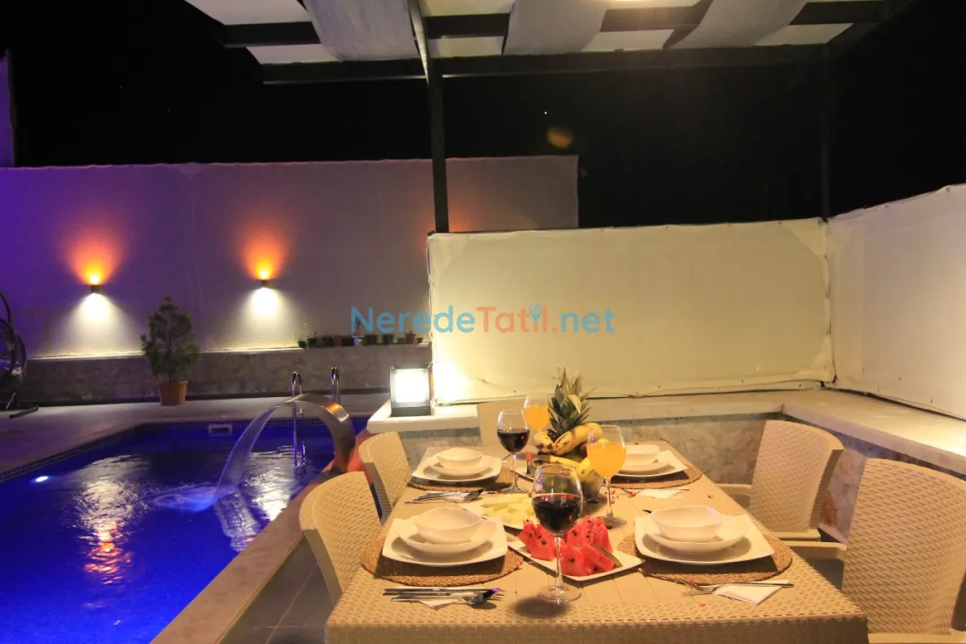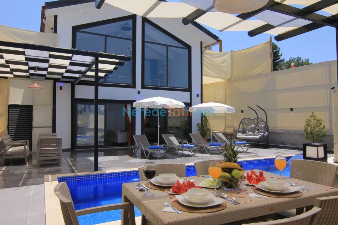 Akbel'de konumlanmış bu özel havuzlu villa, doğa manzarası ile huzur dolu bir tatil arayanlar için ideal bir seçenek sunuyor. Villa, korunaklı havuzu sayesinde muhafazakar tatilcileri de memnun edecek özelliklere sahiptir. 3 metre genişliğinde, 7.5 metre uzunluğunda ve 1.35 metre derinliğindeki havuz sadece size ait olacak şekilde tasarlanmıştır.
