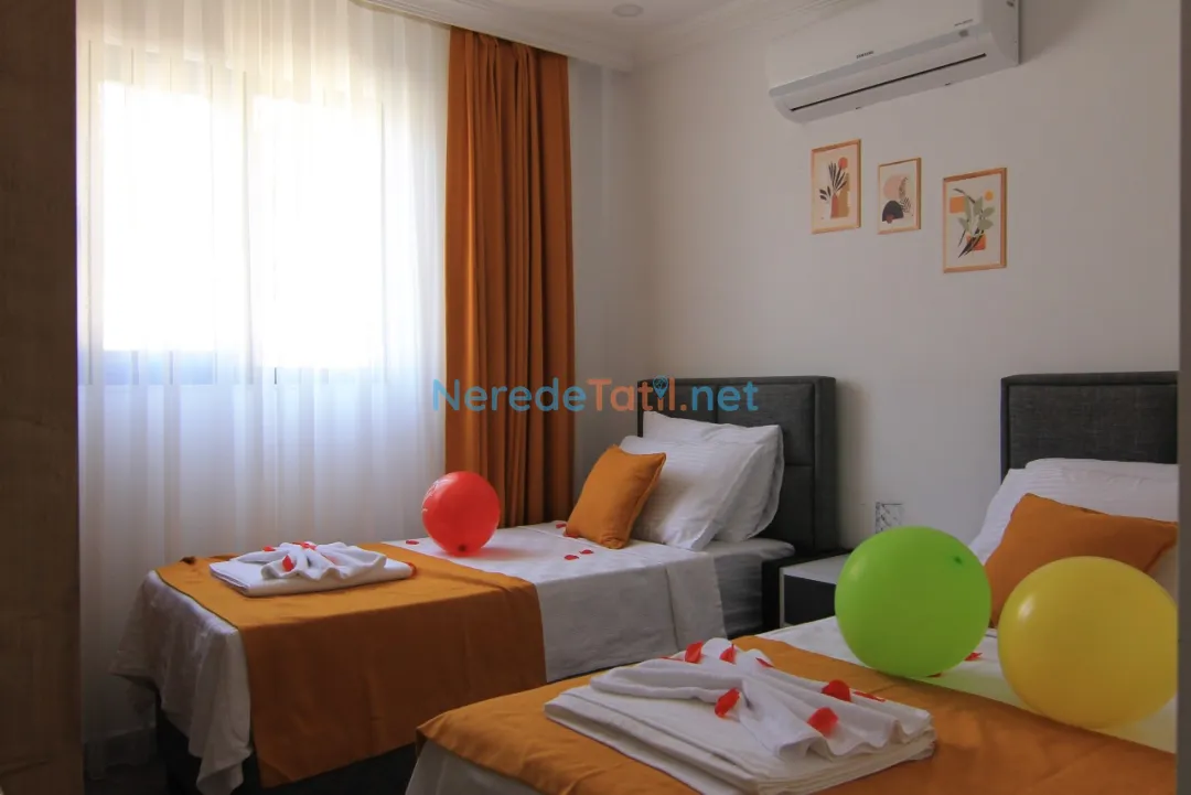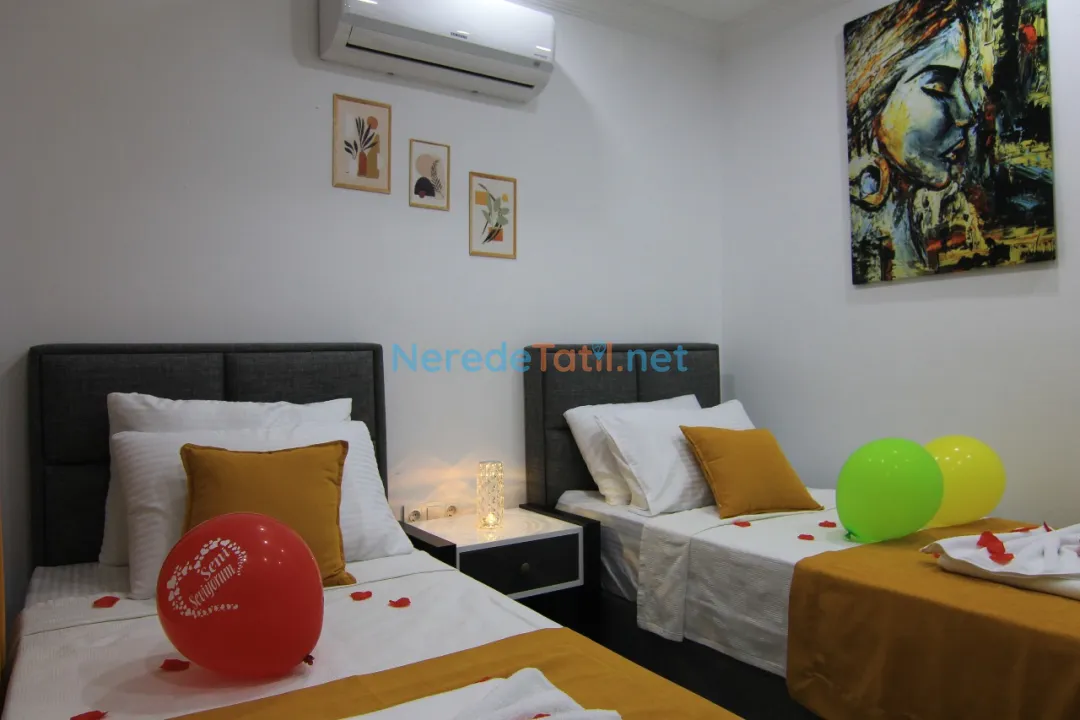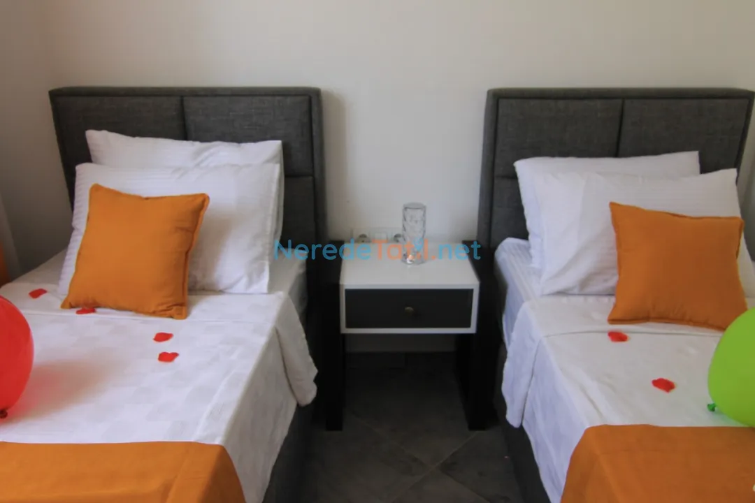Villada toplam iki yatak odası ve iki banyo bulunmaktadır. Yatak odalarında bir çift kişilik yatak ve iki tek kişilik yatak mevcuttur, bu da 4 kişilik bir kapasite sunmaktadır.