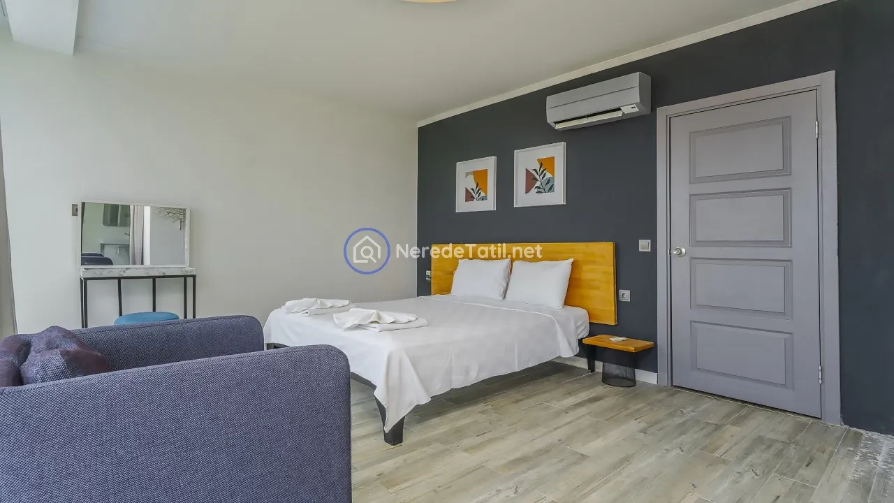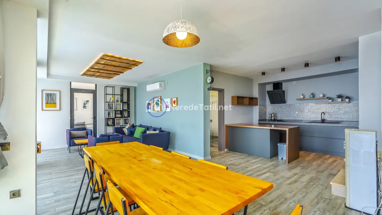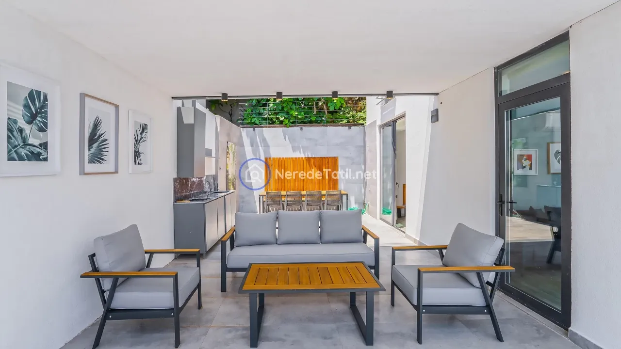 Villanın konumu, merkeze ve plaja kolay ulaşım imkanı tanırken, deniz manzarası eşliğinde huzurlu bir ortam sunar. Merkeze 1700 metre, plaja ise 2400 metre mesafededir. Yakın çevredeki market, restoran ve otogara olan kısa mesafeler, günlük ihtiyaçlarınızı karşılamayı kolaylaştırır.