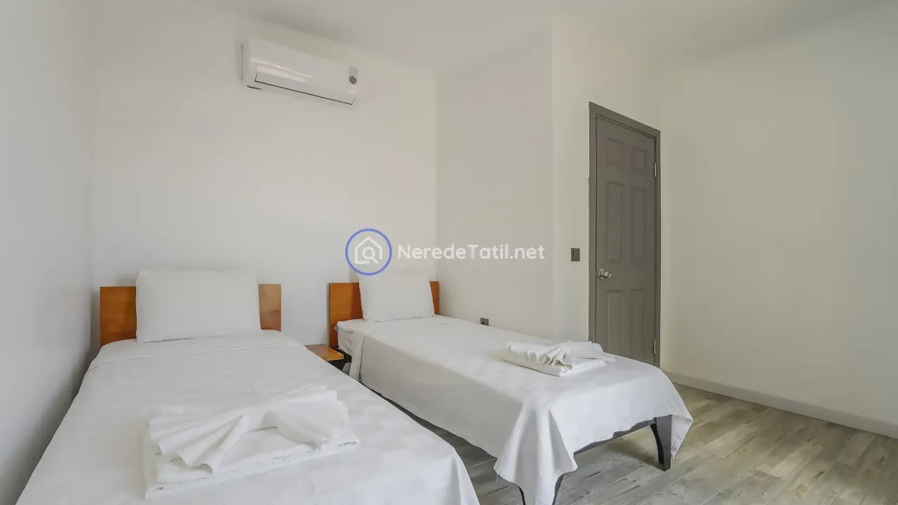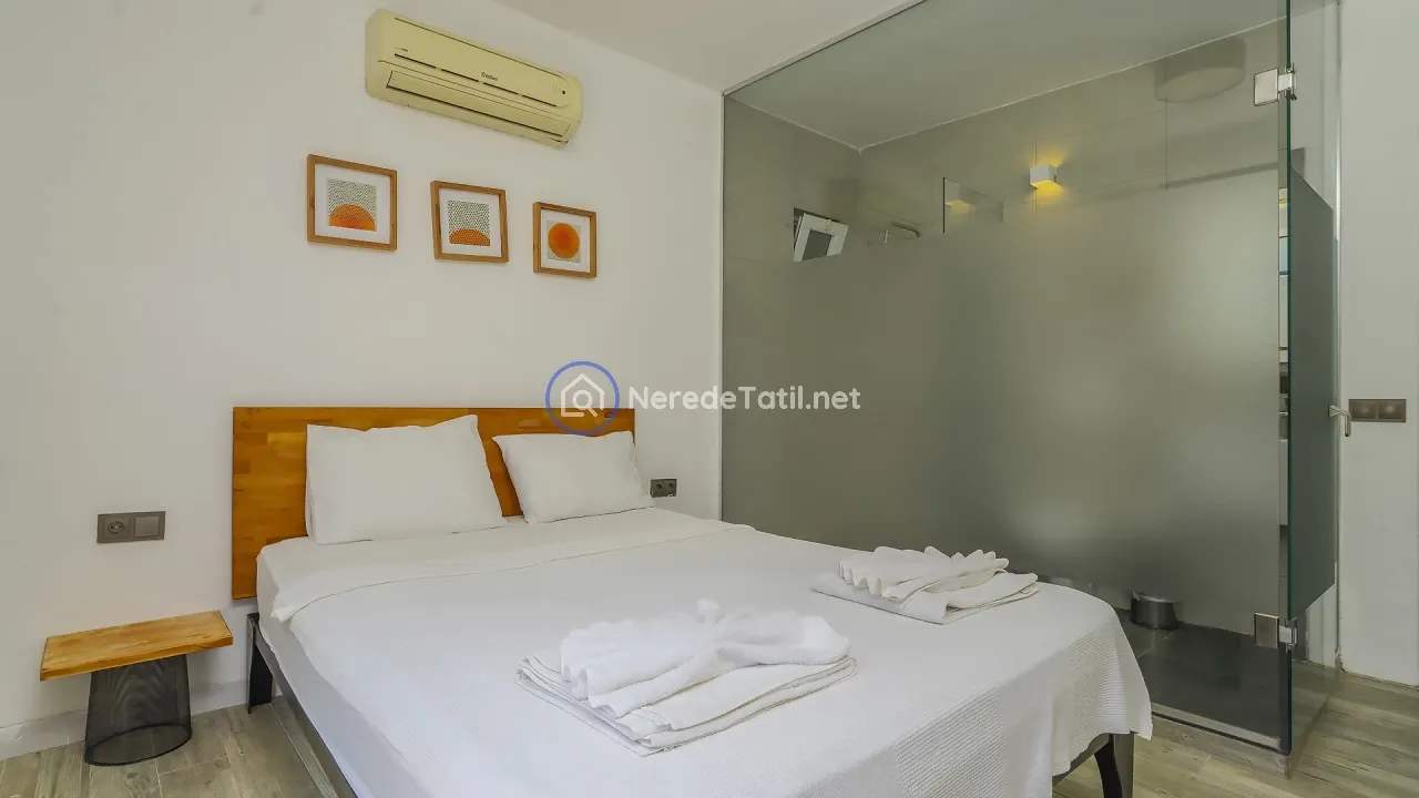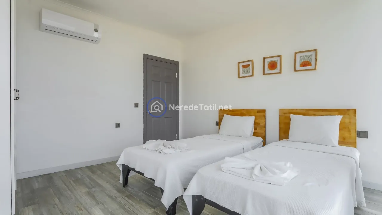 Akbel bölgesinin kalbinde yer alan bu lüks villa, konfor ve doğanın iç içe geçtiği bir tatil deneyimi sunuyor. Villa, 4 yatak odası ve 3 banyosu ile 8 kişiye kadar konaklama imkanı sağlıyor. İki adet çift kişilik yatak ve dört adet tek kişilik yatak ile her türlü konfor düşünülmüştür.