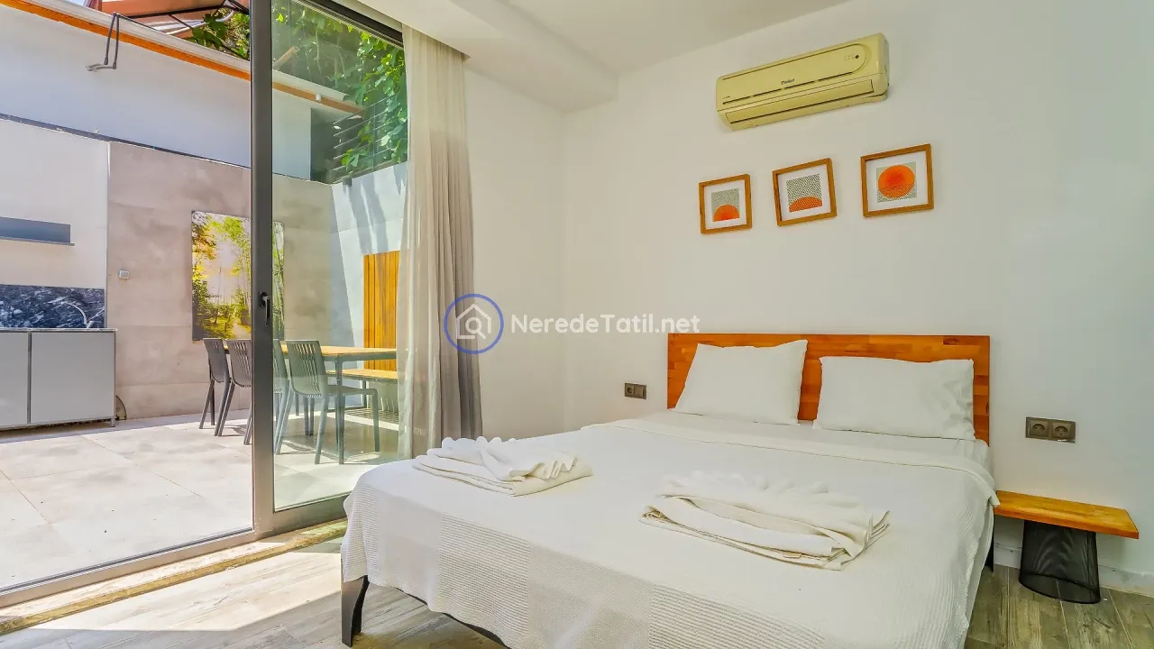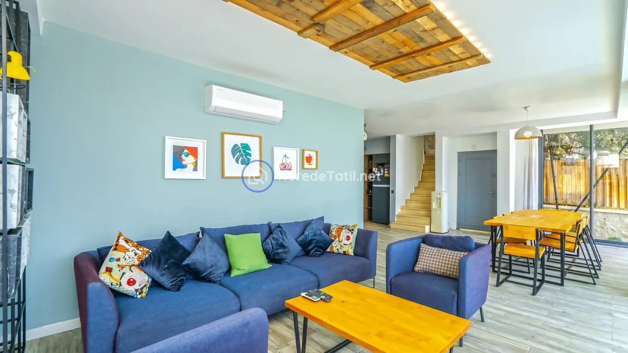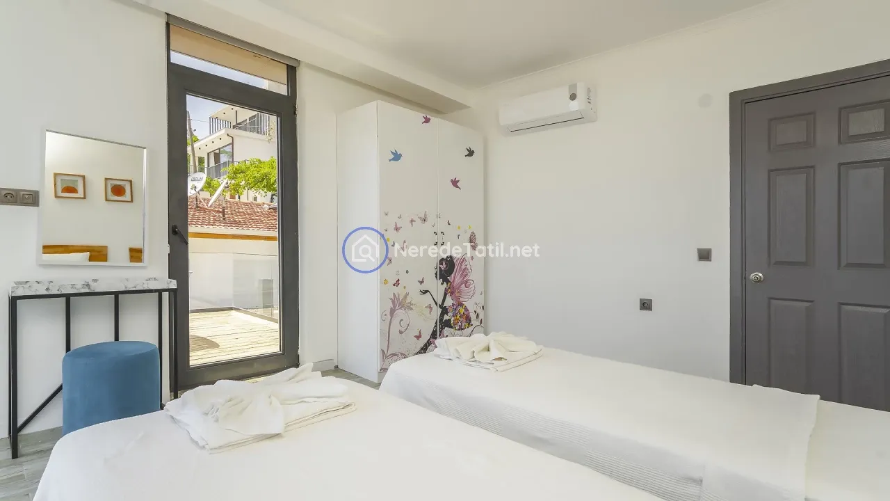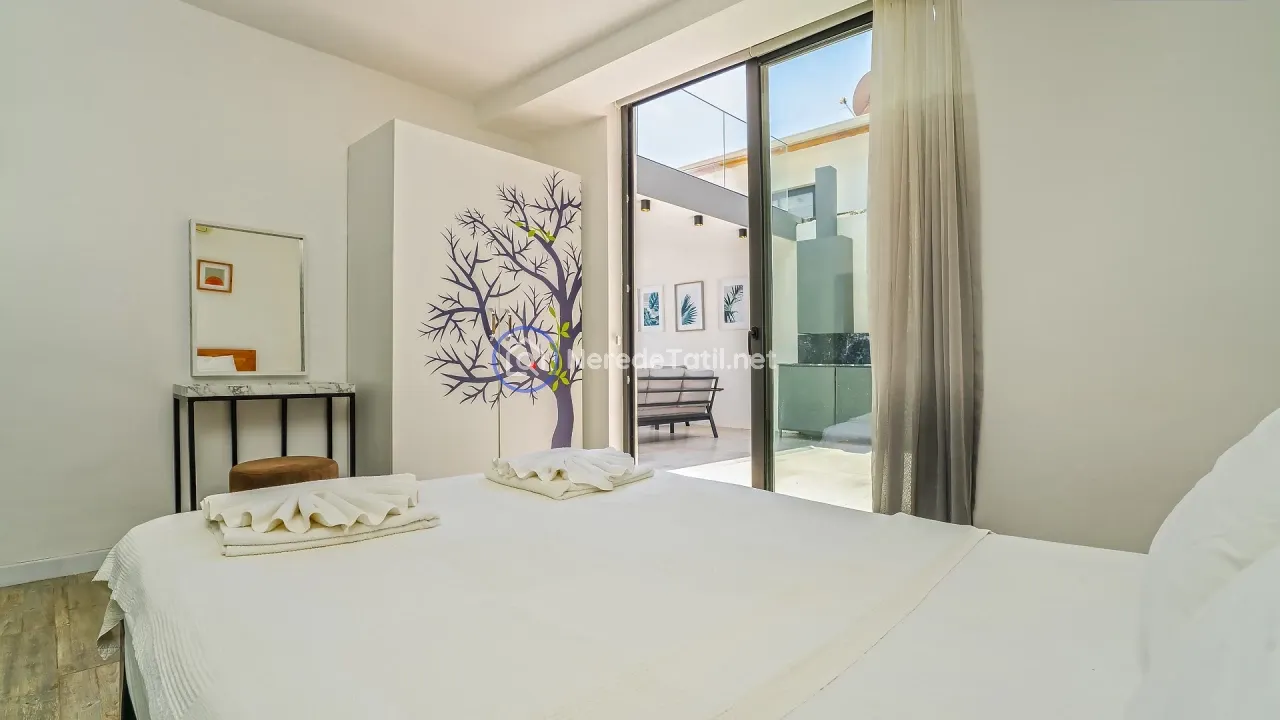 Akbel bölgesinin kalbinde yer alan bu lüks villa, konfor ve doğanın iç içe geçtiği bir tatil deneyimi sunuyor. Villa, 4 yatak odası ve 3 banyosu ile 8 kişiye kadar konaklama imkanı sağlıyor. İki adet çift kişilik yatak ve dört adet tek kişilik yatak ile her türlü konfor düşünülmüştür.