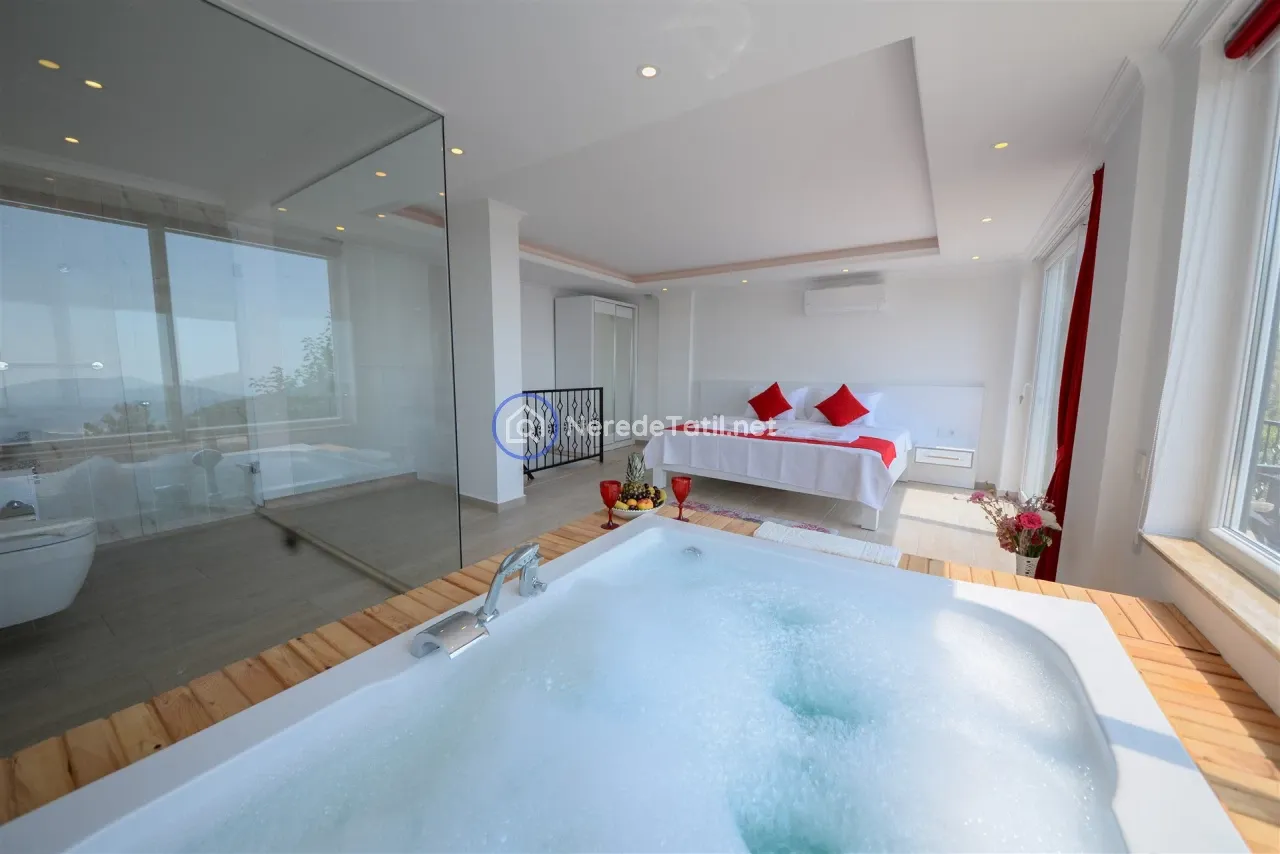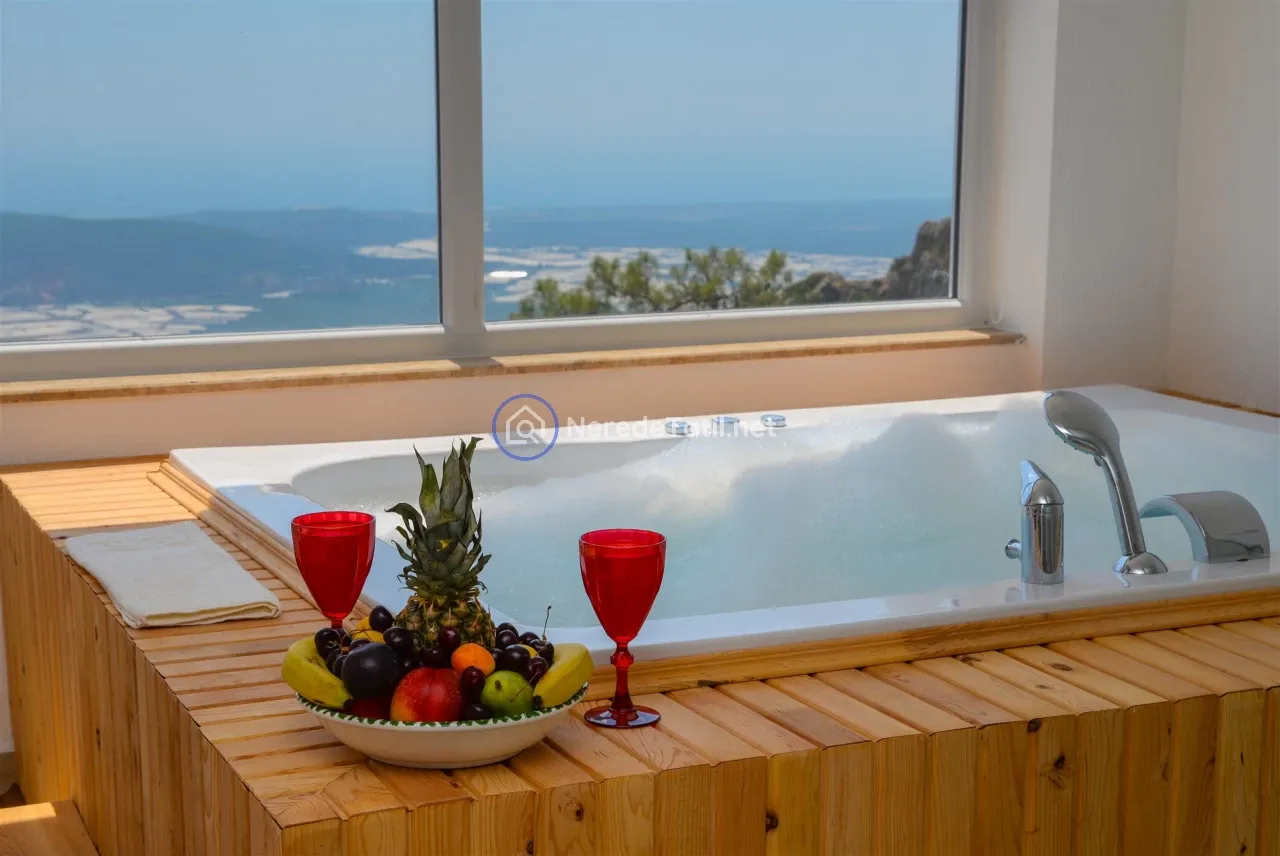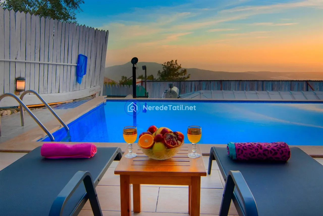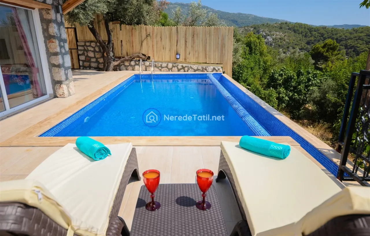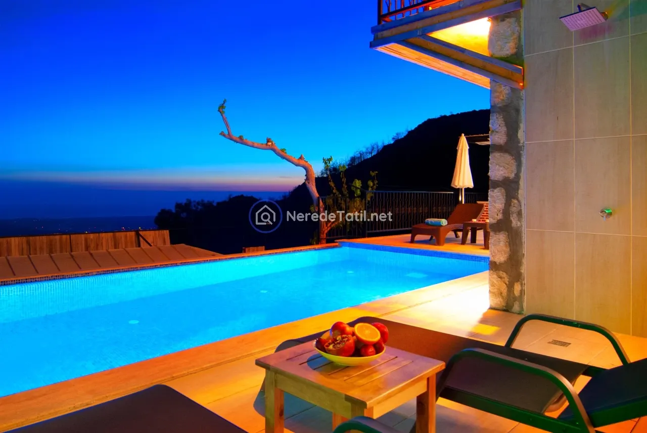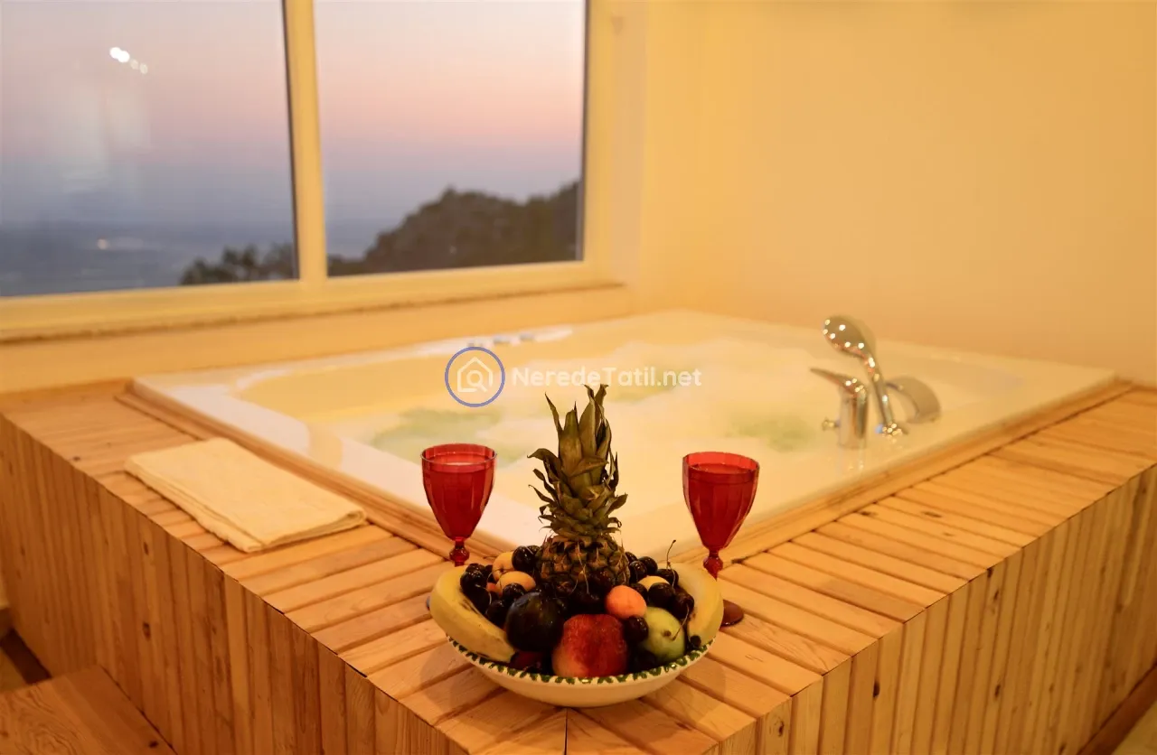Üzümlü'nün huzurlu ve doğal ortamında yer alan bu lüks villa, konuklarına unutulmaz bir tatil deneyimi sunuyor. Muhafazakar villalar kategorisinde yer alan bu mekan, özel ve korunaklı havuzu ile mahremiyetinize önem verir. Havuzun eni 3 metre, boyu 7.5 metre ve derinliği 1.45 metredir. Doğa ve deniz manzarası eşliğinde, jakuzide rahatlayarak günün yorgunluğunu atabilirsiniz.
