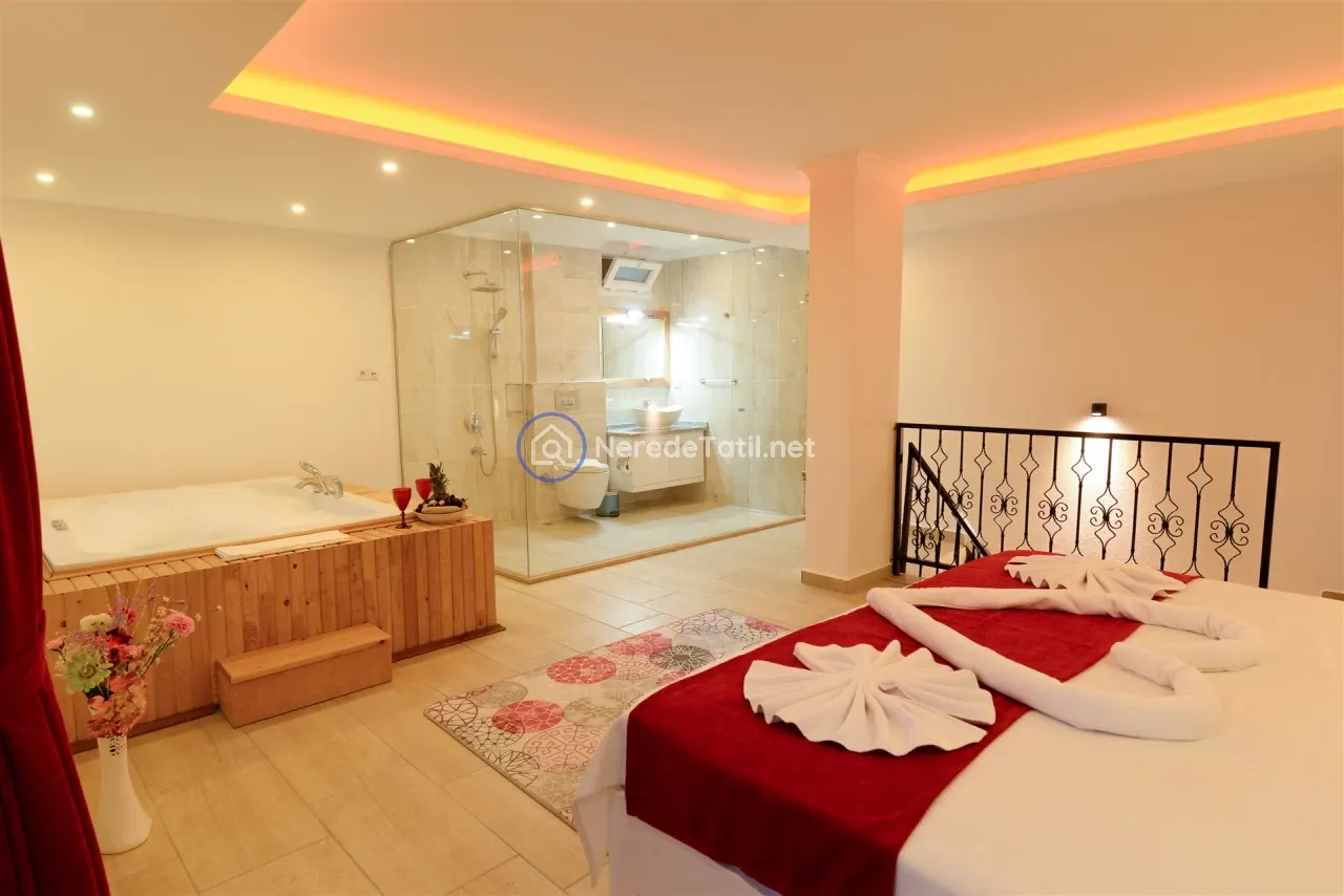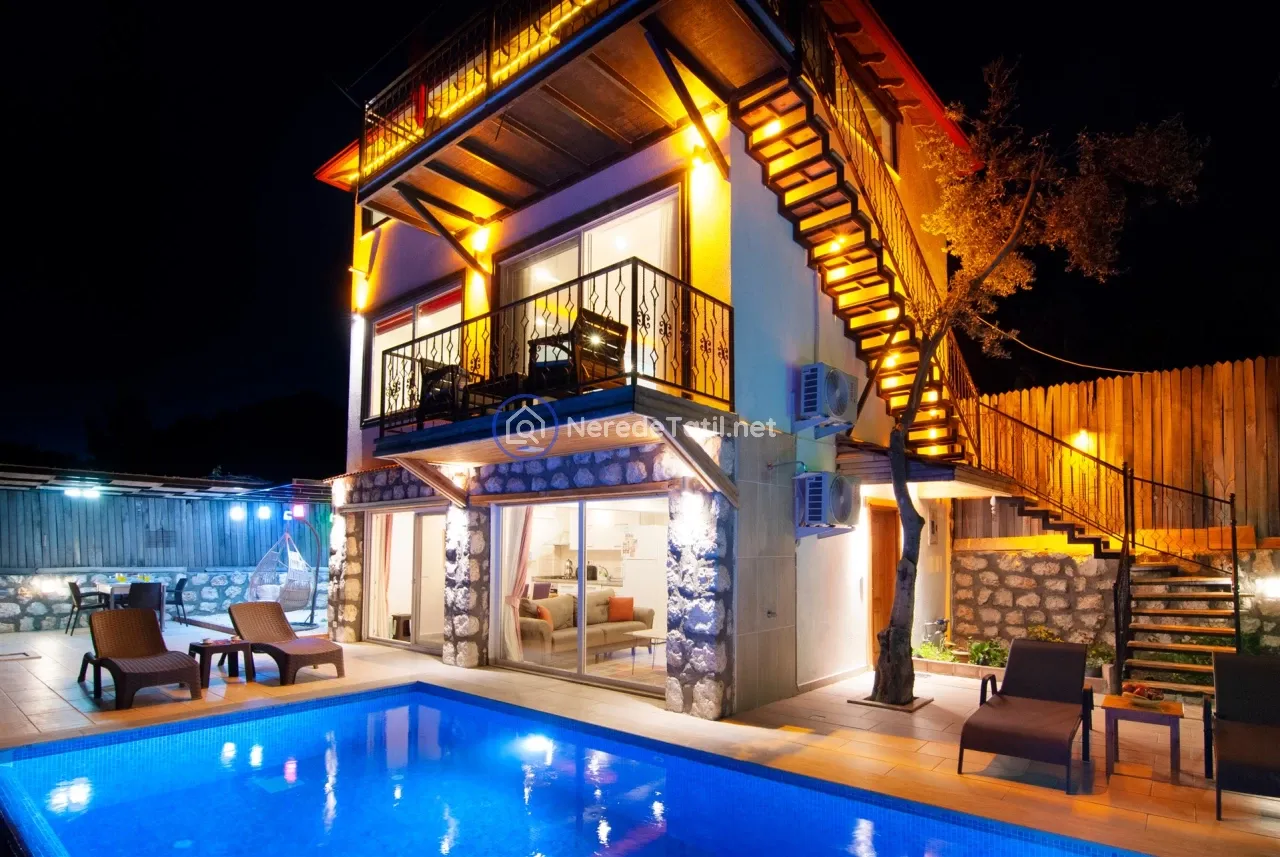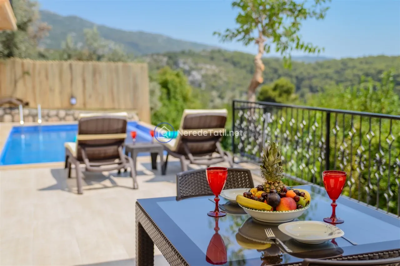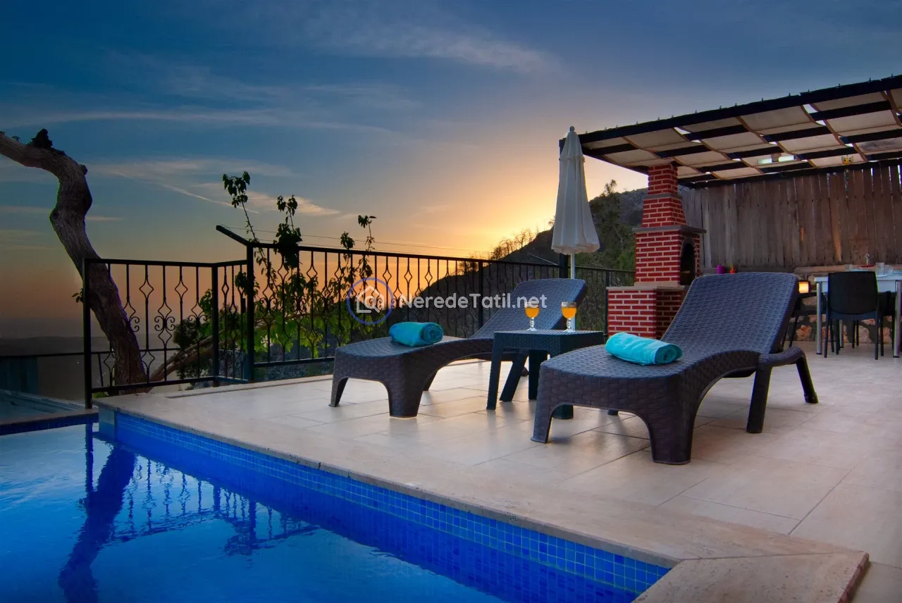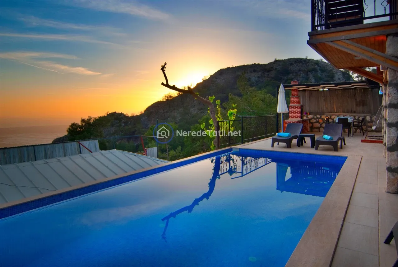 Üzümlü'nün huzurlu ve doğal ortamında yer alan bu lüks villa, konuklarına unutulmaz bir tatil deneyimi sunuyor. Muhafazakar villalar kategorisinde yer alan bu mekan, özel ve korunaklı havuzu ile mahremiyetinize önem verir. Havuzun eni 3 metre, boyu 7.5 metre ve derinliği 1.45 metredir. Doğa ve deniz manzarası eşliğinde, jakuzide rahatlayarak günün yorgunluğunu atabilirsiniz.