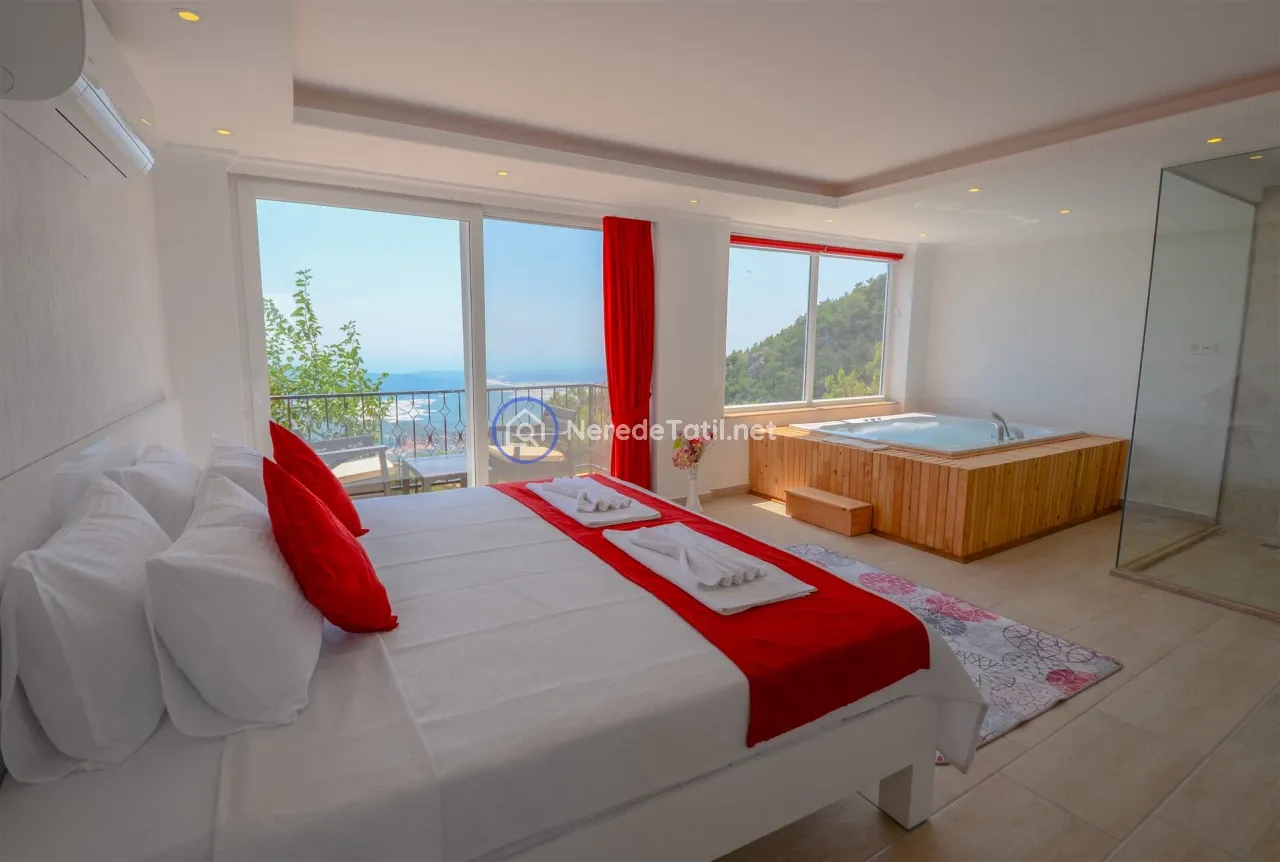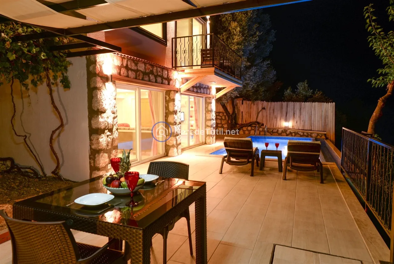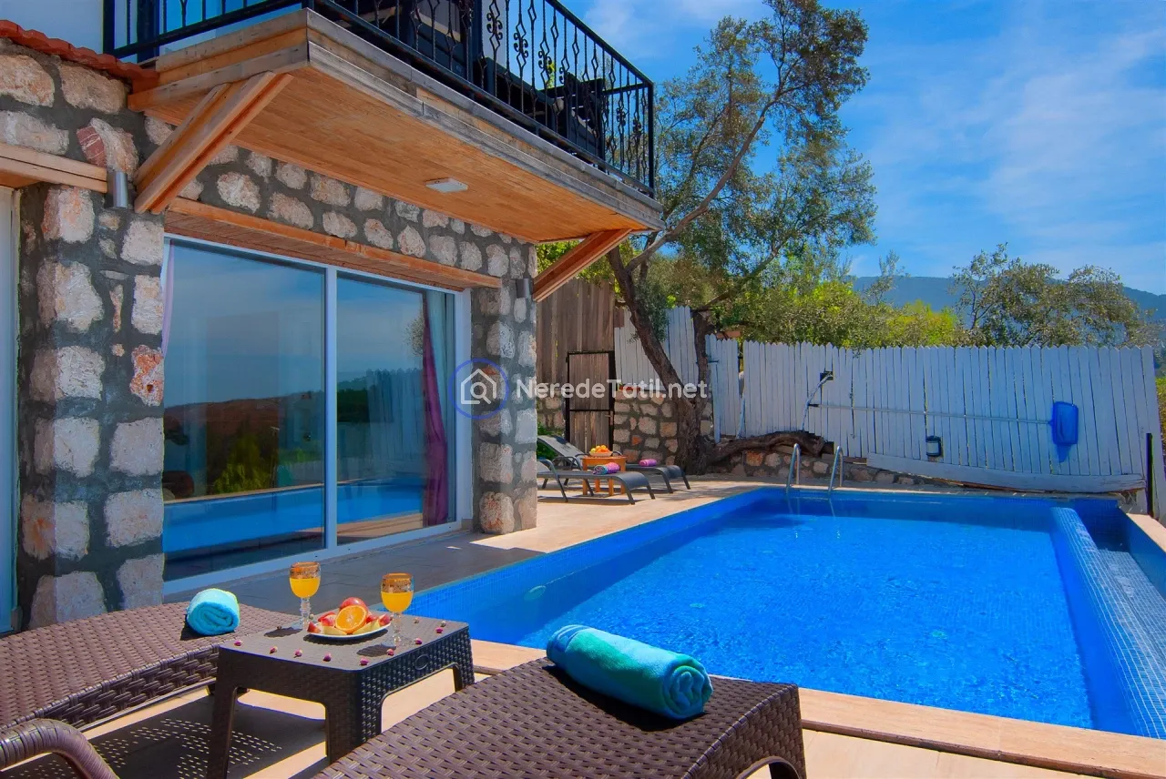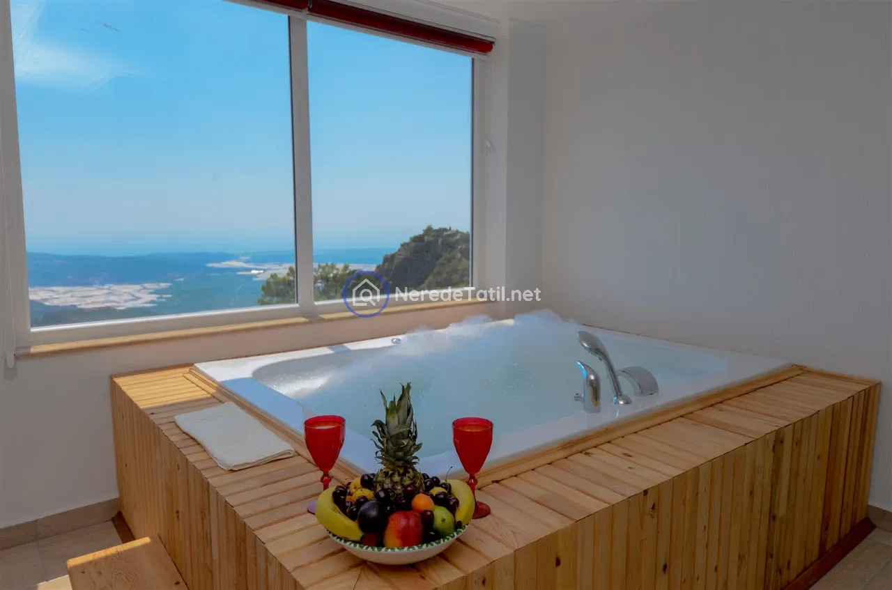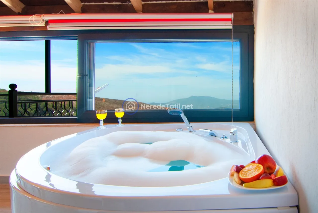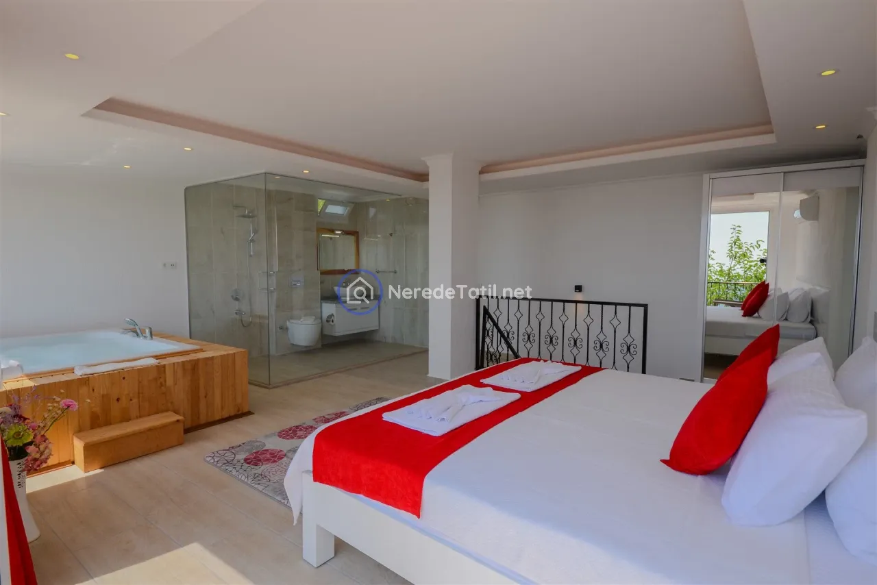 Üzümlü'nün huzurlu ve doğal ortamında yer alan bu lüks villa, konuklarına unutulmaz bir tatil deneyimi sunuyor. Muhafazakar villalar kategorisinde yer alan bu mekan, özel ve korunaklı havuzu ile mahremiyetinize önem verir. Havuzun eni 3 metre, boyu 7.5 metre ve derinliği 1.45 metredir. Doğa ve deniz manzarası eşliğinde, jakuzide rahatlayarak günün yorgunluğunu atabilirsiniz.
