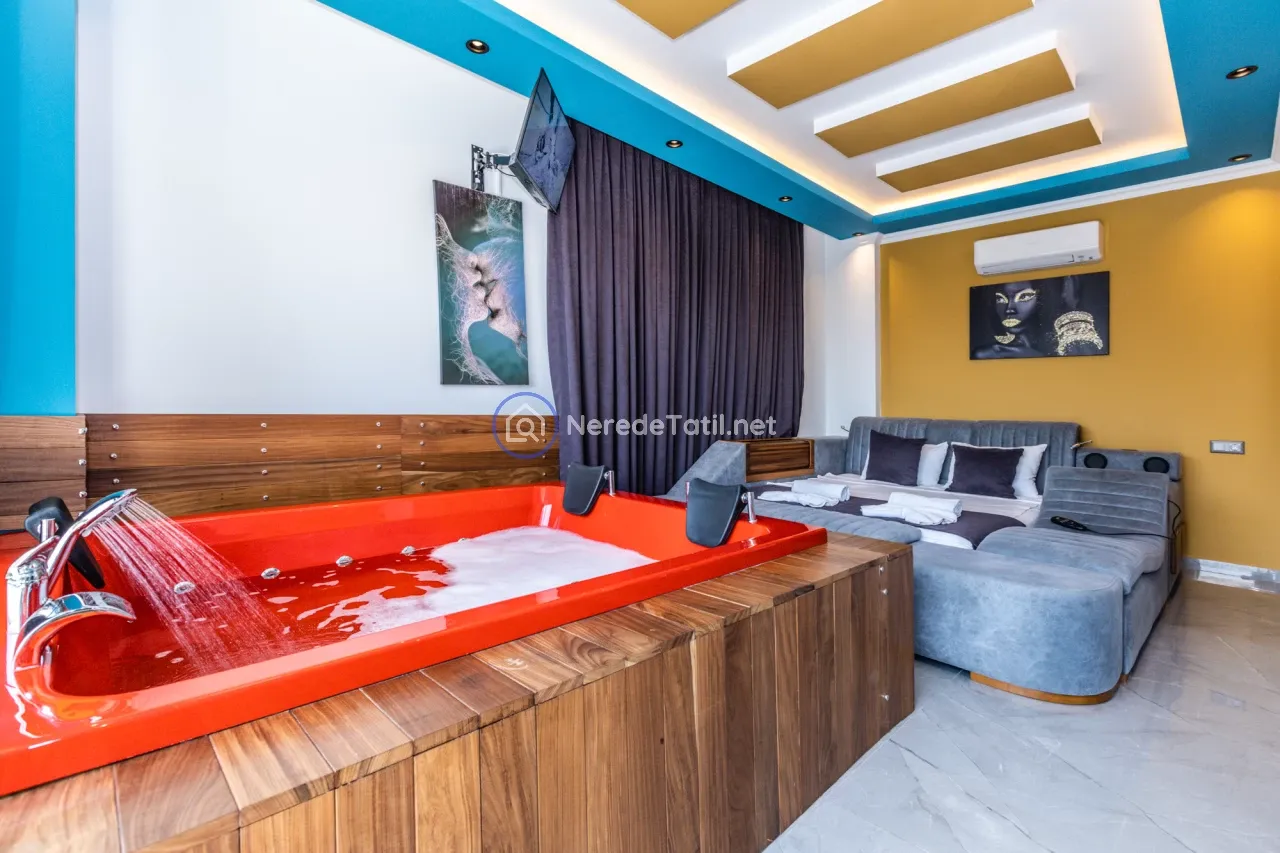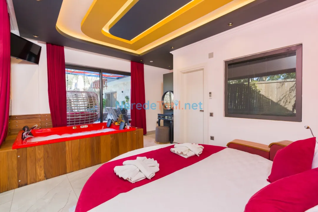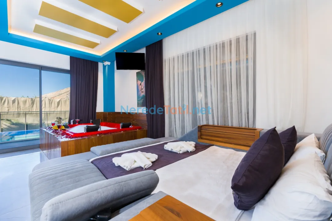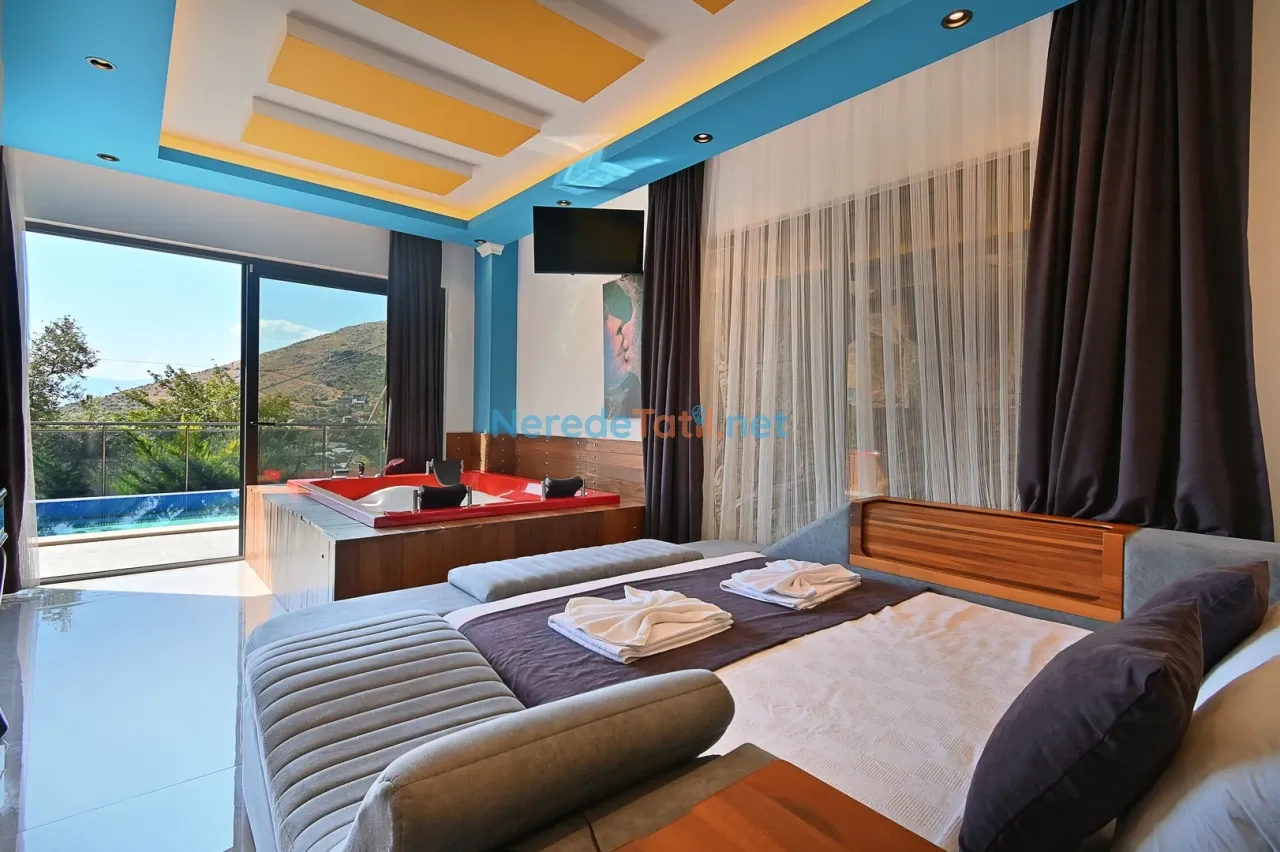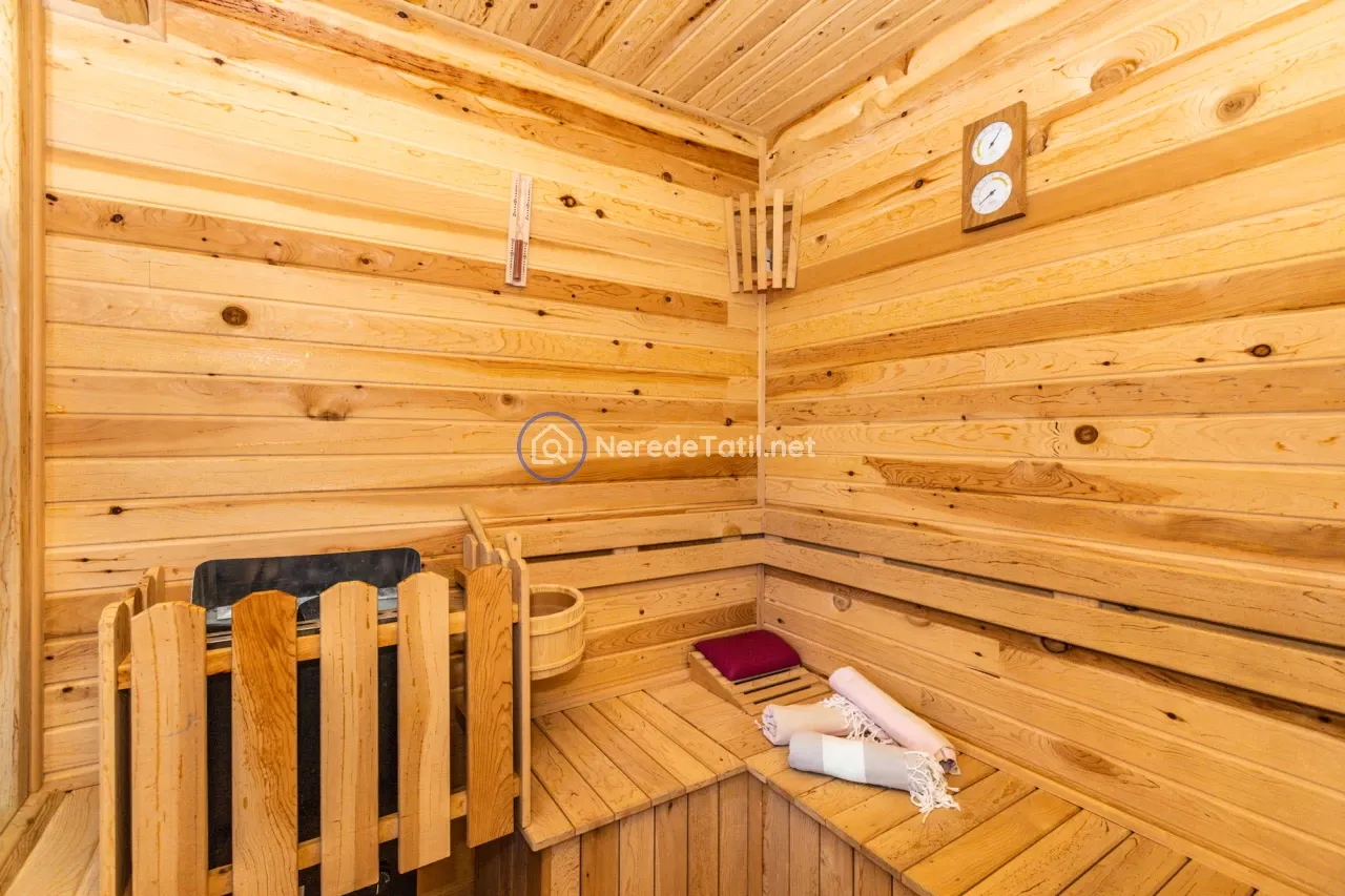 Üç yatak odası ve üç banyo ile toplamda 6 kişilik konaklama kapasitesi sunan villada, iki adet çift kişilik yatak ve iki adet tek kişilik yatak bulunmaktadır. Ayrıca bir bebek yatağı da mevcuttur. Villanın içerisinde jakuzi ve sauna bulunmakta, böylece tatilinizi daha da konforlu hale getirebilirsiniz. Hamam ve spor aletleri de konukların hizmetindedir.