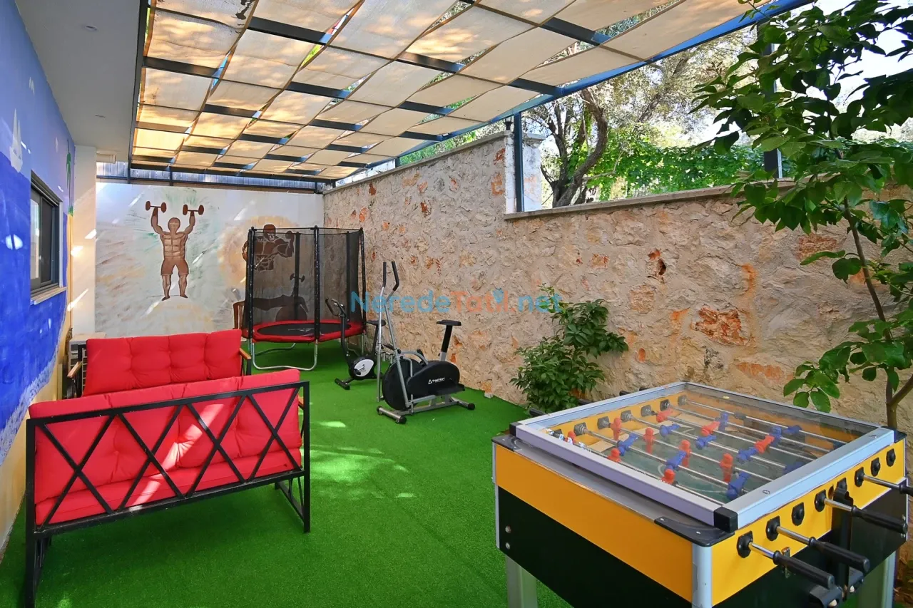 Açık havada barbekü keyfi yapmak isteyenler için BBQ - Mangal seçeneği sunulmaktadır. Bahçesinde doğa manzarası eşliğinde huzurla vakit geçirebilir, langırt ve masa tenisi ile eğlenceli anlar yaşayabilirsiniz. Villa, şehir içinde konumlanmış olup, plaja 5 km, markete 1 km, şehir merkezine ise 5 km uzaklıktadır. En yakın restorana ve markete sadece 1 km mesafede bulunan villa, ekonomik bir konaklama seçeneği sunmaktadır.
