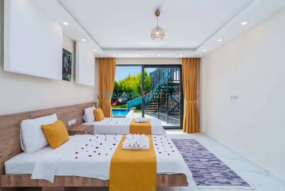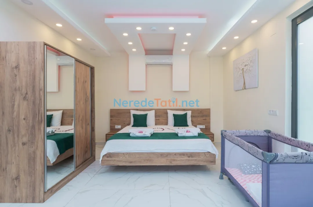 Çavdır'da yer alan bu lüks tatil villası, 4 kişilik kapasitesi ile özellikle balayı çiftleri ve küçük aileler için eşsiz bir konaklama imkanı sunuyor. Villada, 2 yatak odası ve 2 banyo bulunmakta olup, konforlu bir tatil geçirmeniz için her detay düşünülmüştür. Çift kişilik yatak ve iki tek kişilik yatak konforunuzu artırırken, bebekli misafirler için bebek yatağı da mevcuttur.