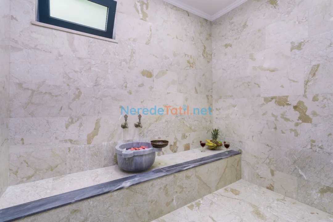 Villanızda, günlük ihtiyaçlarınızı karşılamak üzere bahçeli ve BBQ - Mangal alanları bulunmaktadır. Ayrıca, jakuzi, sauna ve hamam gibi lüks özellikler ile kendinizi şımartabilirsiniz. Çocuklar için oyun alanı ve langırt da mevcuttur.