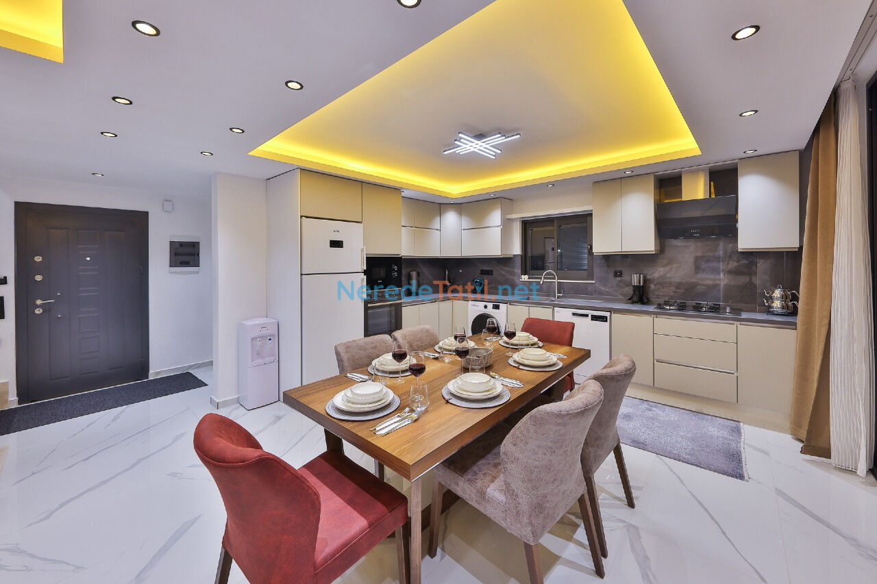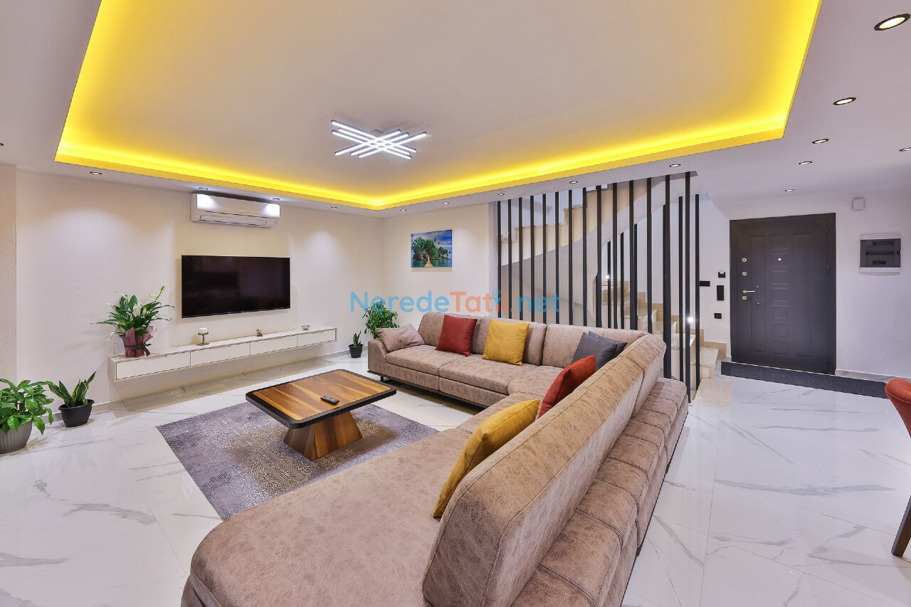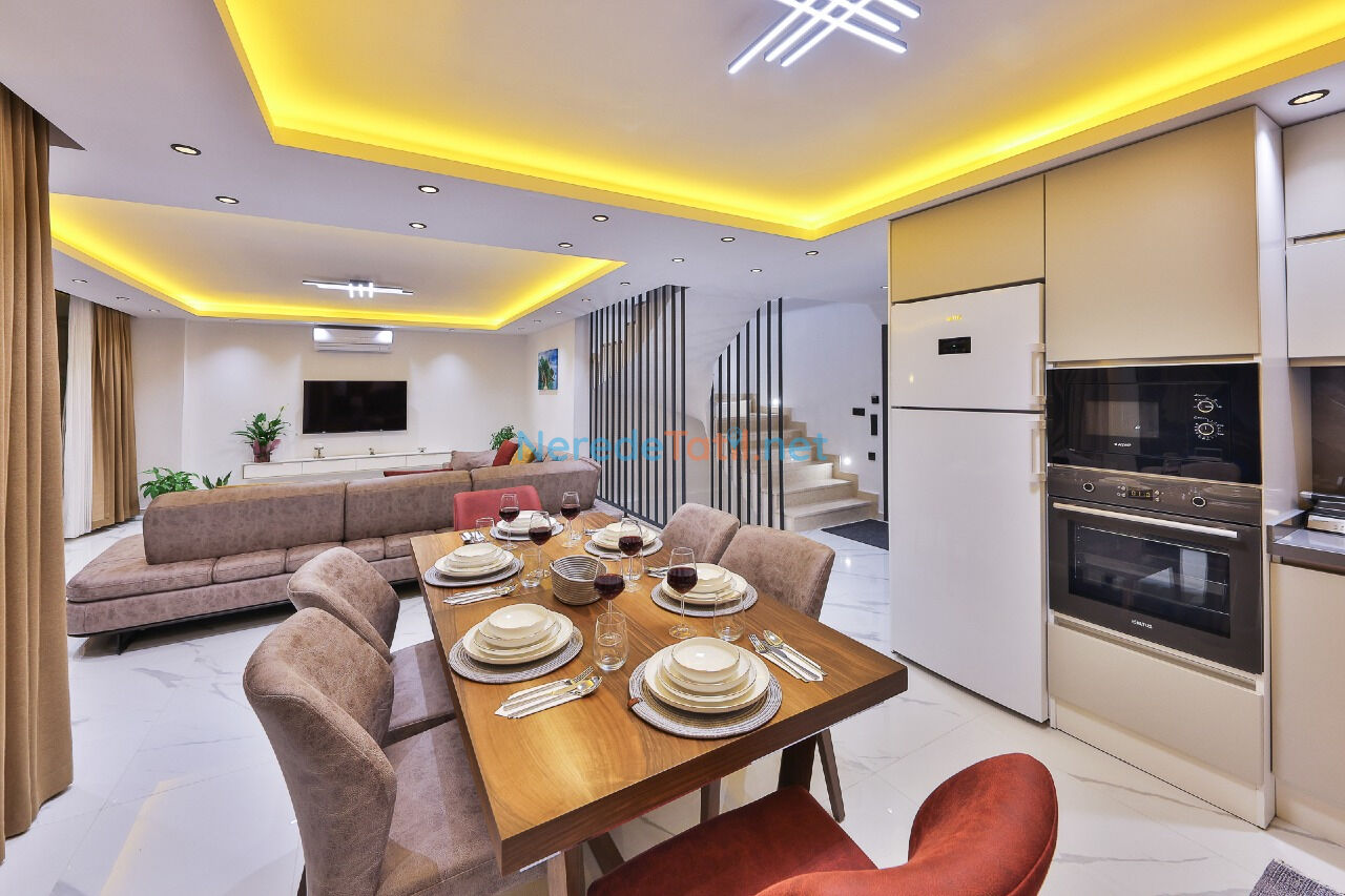 Villamız, tam donanımlı beyaz eşyalar ve klima sistemleri ile donatılmıştır. Geniş balkonları, BBQ - Mangal alanı ve otoparkı ile aile ve arkadaşlarınızla keyifli vakit geçirebilirsiniz. Langırt masası, internet bağlantısı ve uydu TV gibi eğlence ve konfor unsurları da mevcuttur.