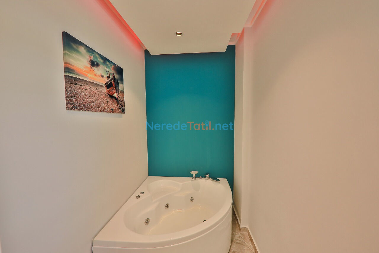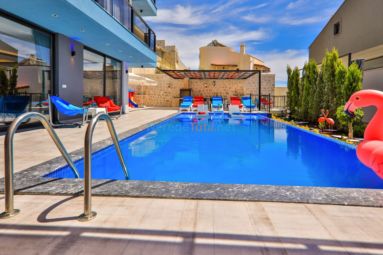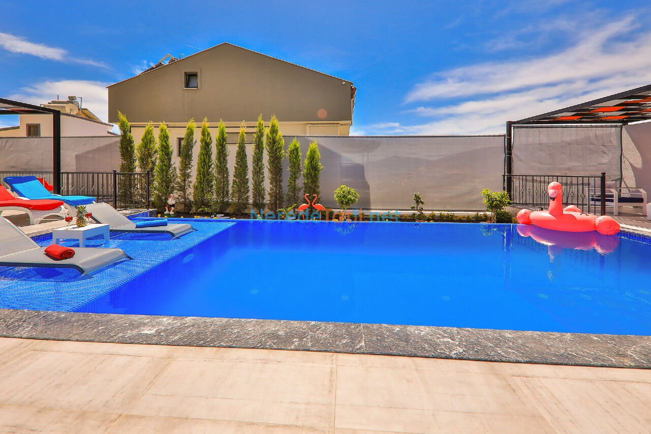 Villanın özel yüzme havuzu 4 metre genişliğinde ve 10 metre uzunluğundadır, derinliği ise 1,5 metredir. Göz alıcı deniz manzarası eşliğinde havuzun tadını çıkarabilirsiniz. Ayrıca, jakuzisi ve saunası ile dinlendirici bir tatil geçirmeniz sağlanır.
