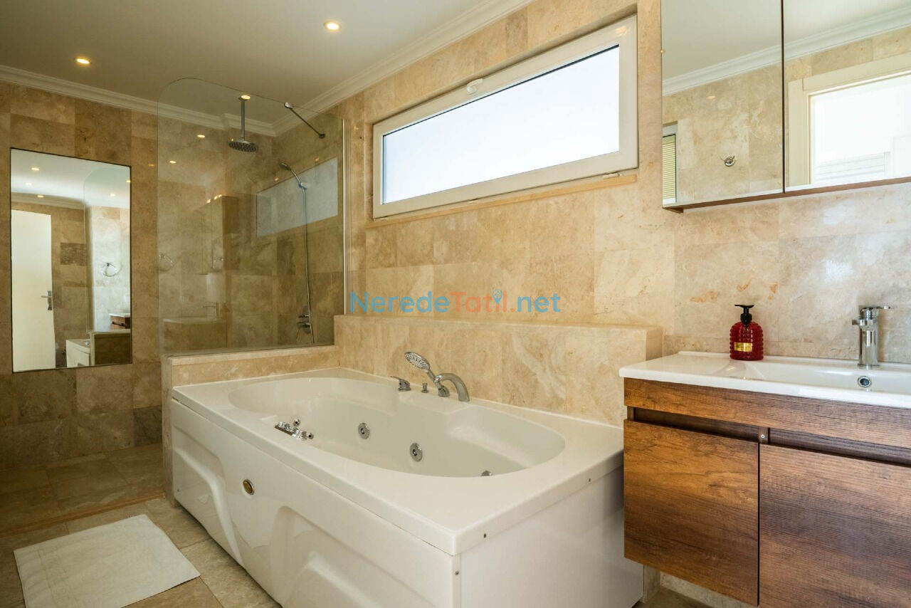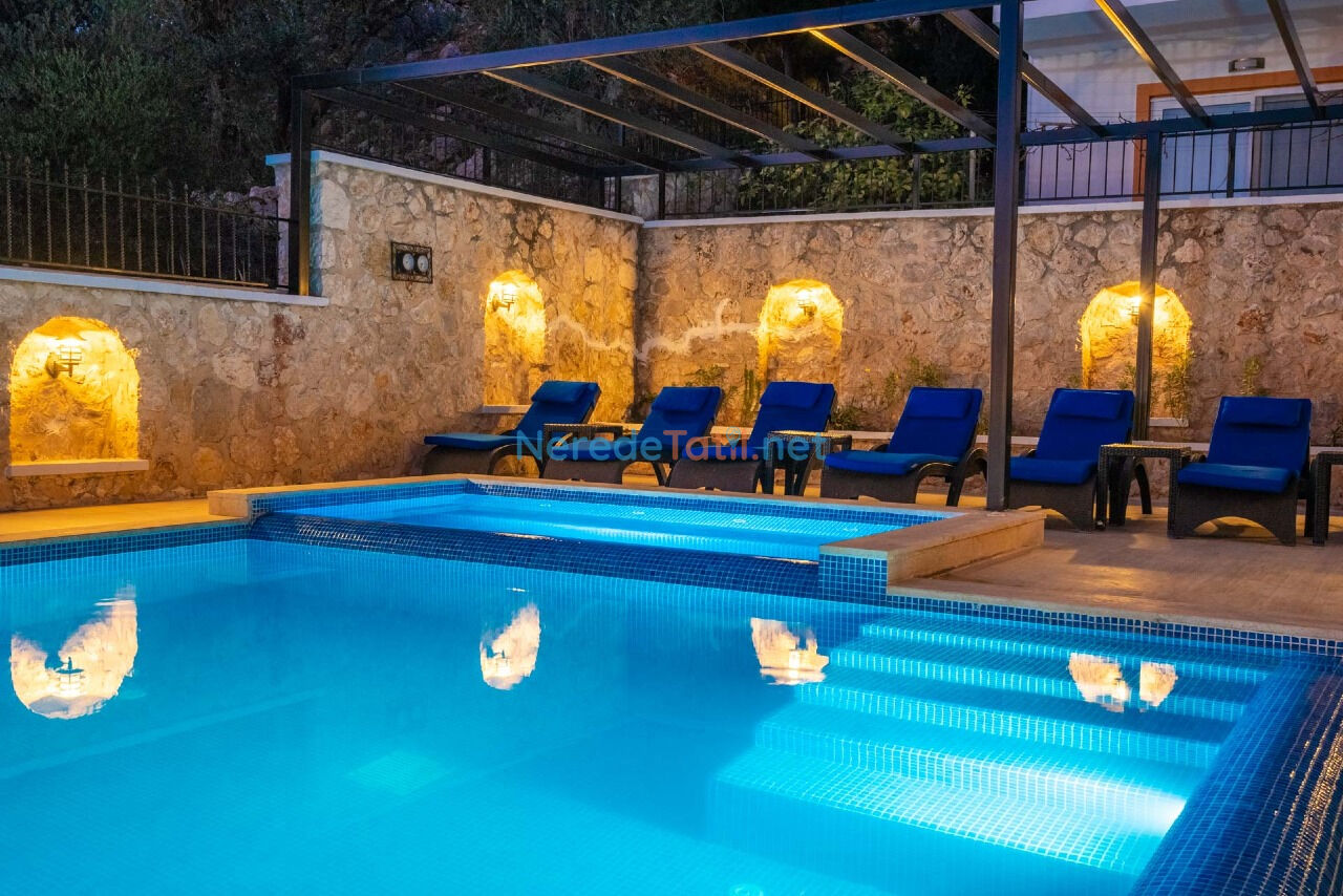 Kalkan'ın eşsiz doğasında, deniz manzaralı ve lüks bir tatil deneyimi için harika bir seçenek sunuyoruz. Bu villa, geniş özel yüzme havuzu ile tatilinizi unutulmaz kılacak. Havuz, 4.5 metre genişliğinde, 14 metre uzunluğunda ve 1.7 metre derinliğindedir. Ayrıca, havuzun ısıtmalı olması sayesinde her mevsim yüzme keyfi yaşayabilirsiniz.