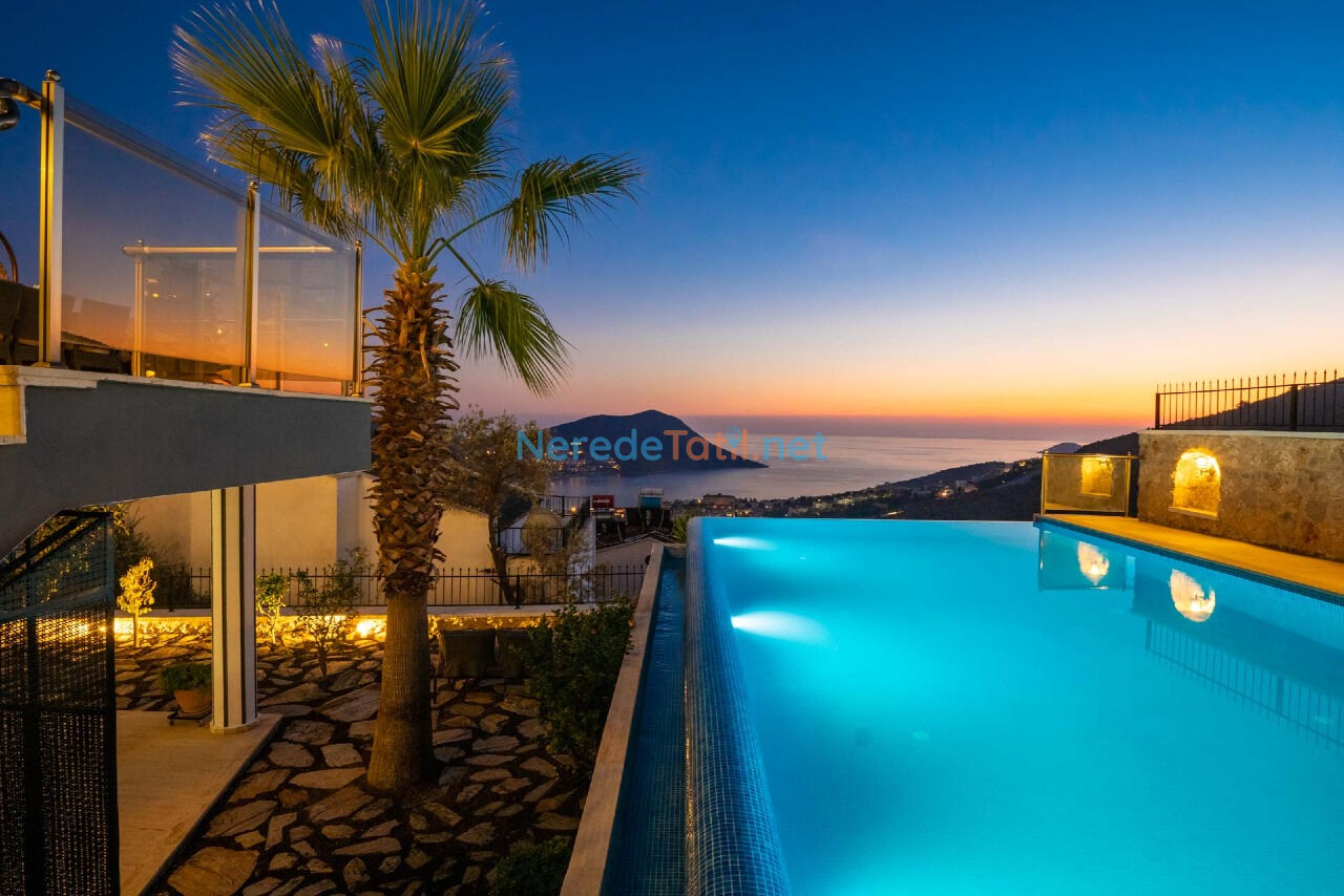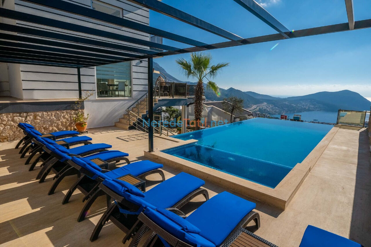 Kalkan'ın kalbinde, ultra lüks bir tatil için bu villa, 2025 ve 2026 erken rezervasyon seçenekleri ile sizleri bekliyor. Deniz ve doğa manzarasının tadını çıkararak, konforlu ve keyifli bir tatil geçirebilirsiniz.