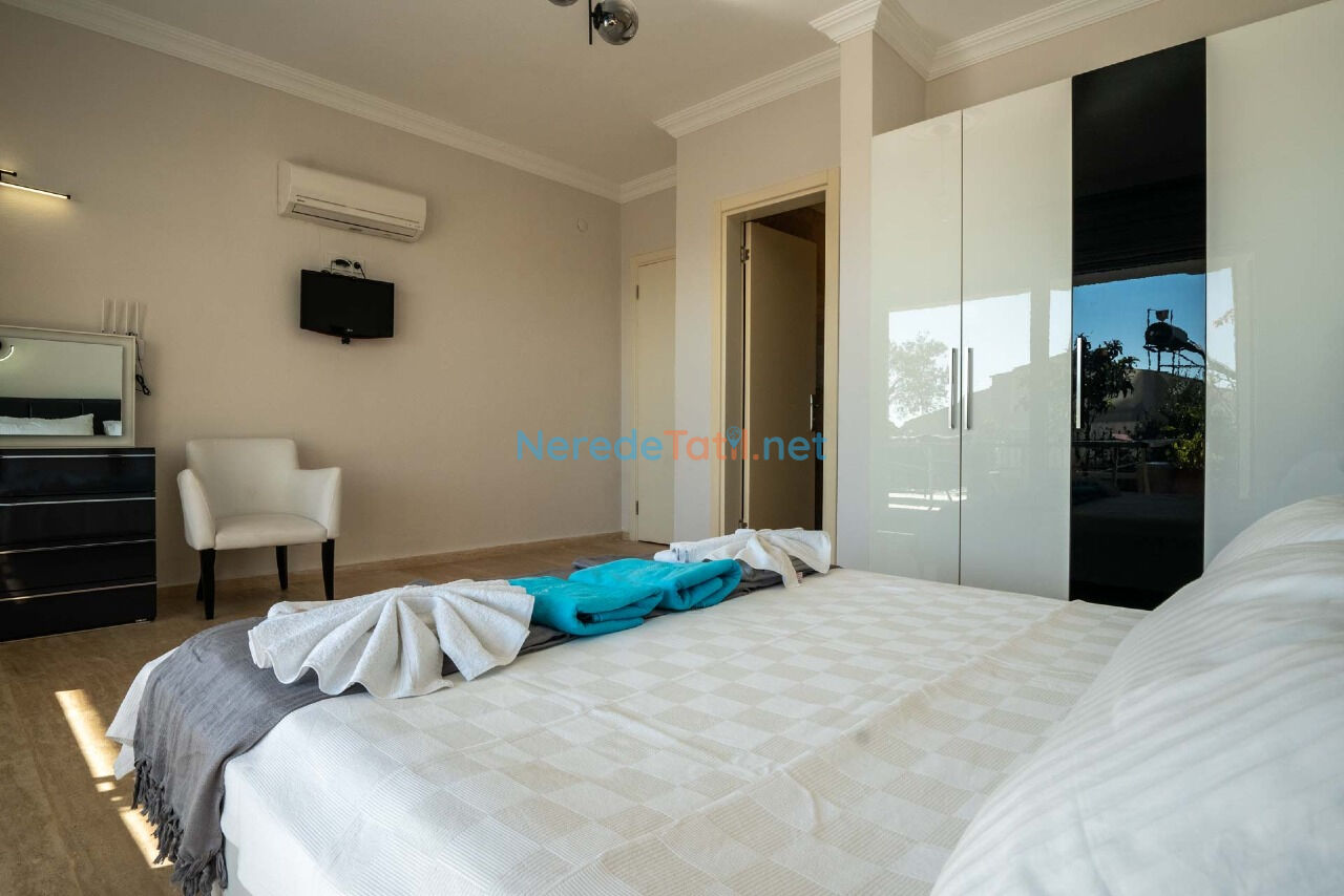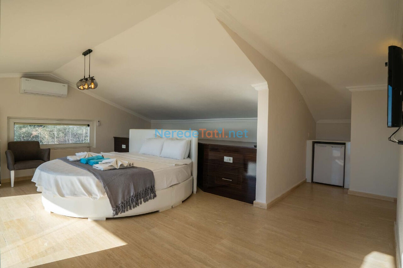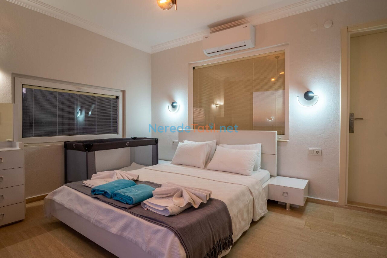 Villada toplamda 10 kişi kapasiteli konaklama imkanı bulunmaktadır. Beş yatak odası; dört çift kişilik yatak ve iki tek kişilik yatak ile donatılmıştır. Ayrıca, bir bebek yatağı da mevcuttur. Her odanın kendine ait banyosu bulunması, misafirler için ekstra konfor sağlar.