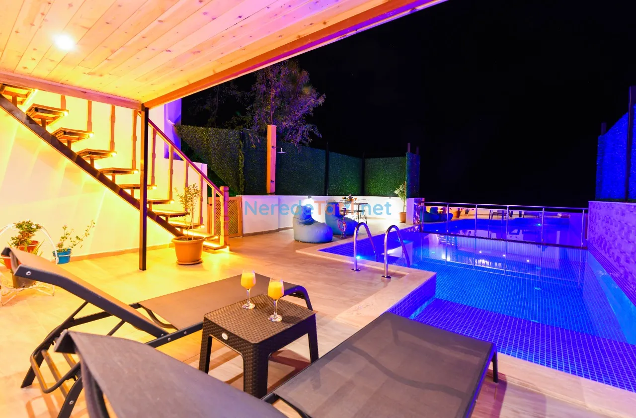 Ulugöl'ün eşsiz doğası içinde yer alan bu Bungalow, balayı çiftleri için mükemmel bir kaçamak noktası sunmaktadır. Özel havuzu 6 metre uzunluğunda ve 5 metre genişliğinde olup, tamamen korunaklı bir yapıya sahiptir, bu da size dış etkenlerden uzak, huzurlu bir yüzme deneyimi sunar. Ayrıca, Bungalowda bulunan jakuzi ile tatilin keyfini daha da arttırabilirsiniz.
