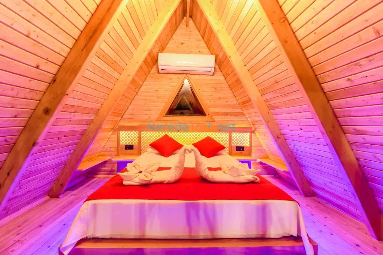 Bungalowda bir adet çift kişilik yatak ve modern tasarlanmış bir banyo bulunmaktadır. İç dekorasyonu ise tüm ihtiyaçlarınızı karşılayacak full mobilyalı ve beyaz eşyalıdır. Konforlu bir konaklama için klima ve internet bağlantısı gibi olanaklar da mevcuttur.