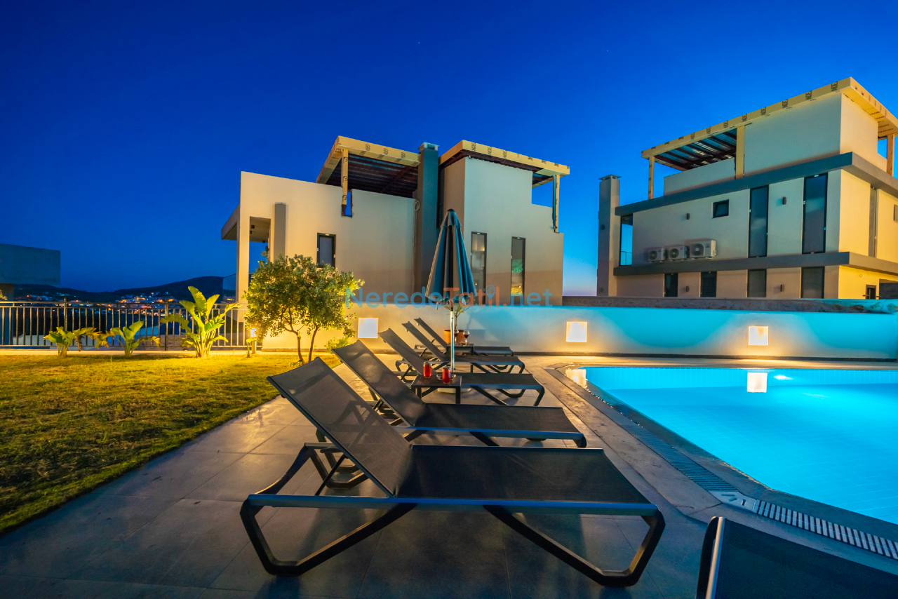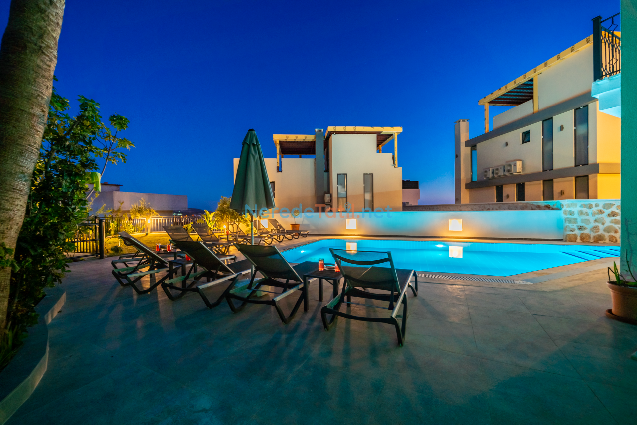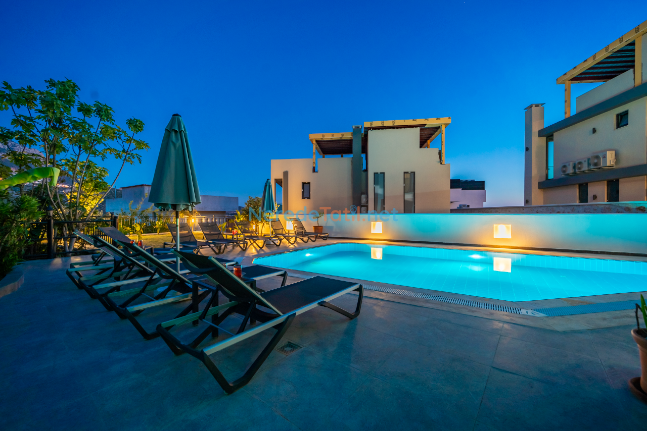 Villanın özel yüzme havuzu, 4 metre genişliğinde, 6 metre uzunluğunda ve 1.6 metre derinliğindedir. Ayrıca, korunaklı havuzu sayesinde gizliliğinizi koruyarak havuzun tadını çıkarabilirsiniz. Villa, deniz ve doğa manzarası ile misafirlerine büyüleyici bir atmosfer sunar.