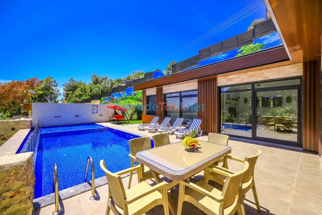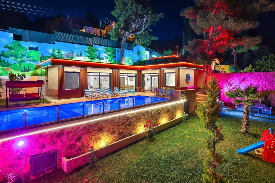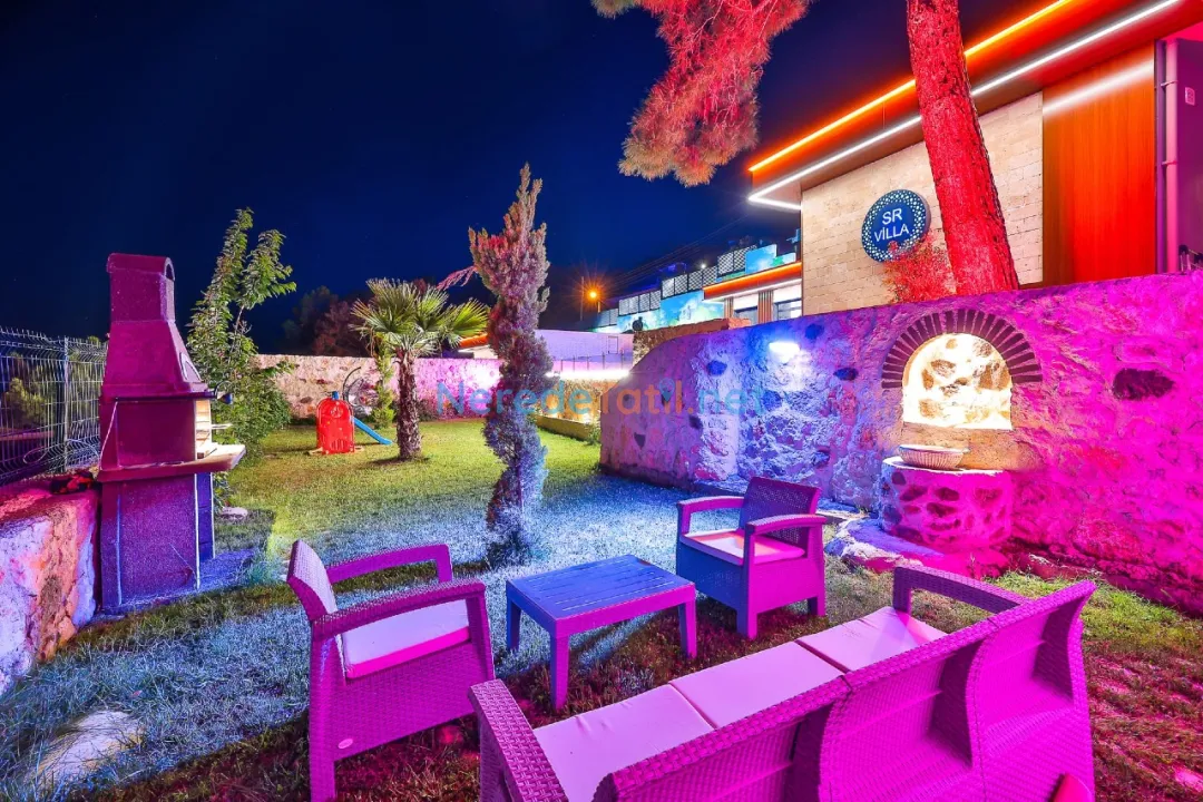 Geniş bahçe alanında BBQ - Mangal keyfi yapabilir, çocuklarınız için güvenli bir oyun alanı bulunmaktadır. Villanın iç tasarımında, konfor ve rahatlık ön planda tutulmuş olup, jakuzi ile tatilinizi daha da özel kılabilirsiniz.