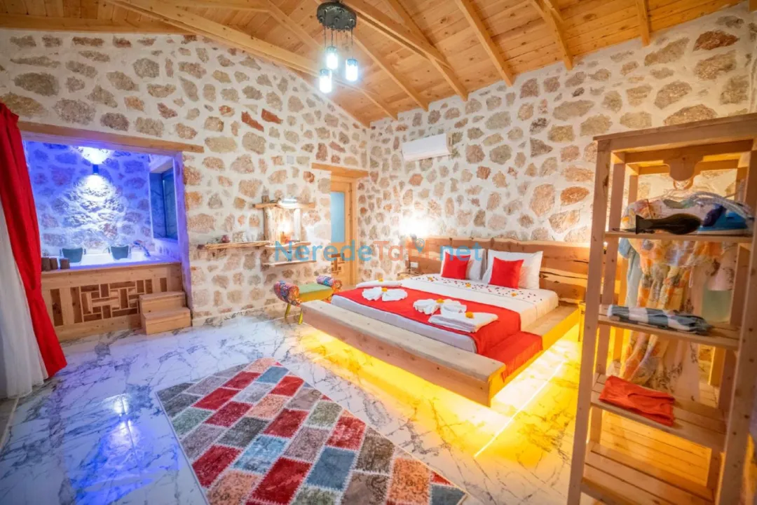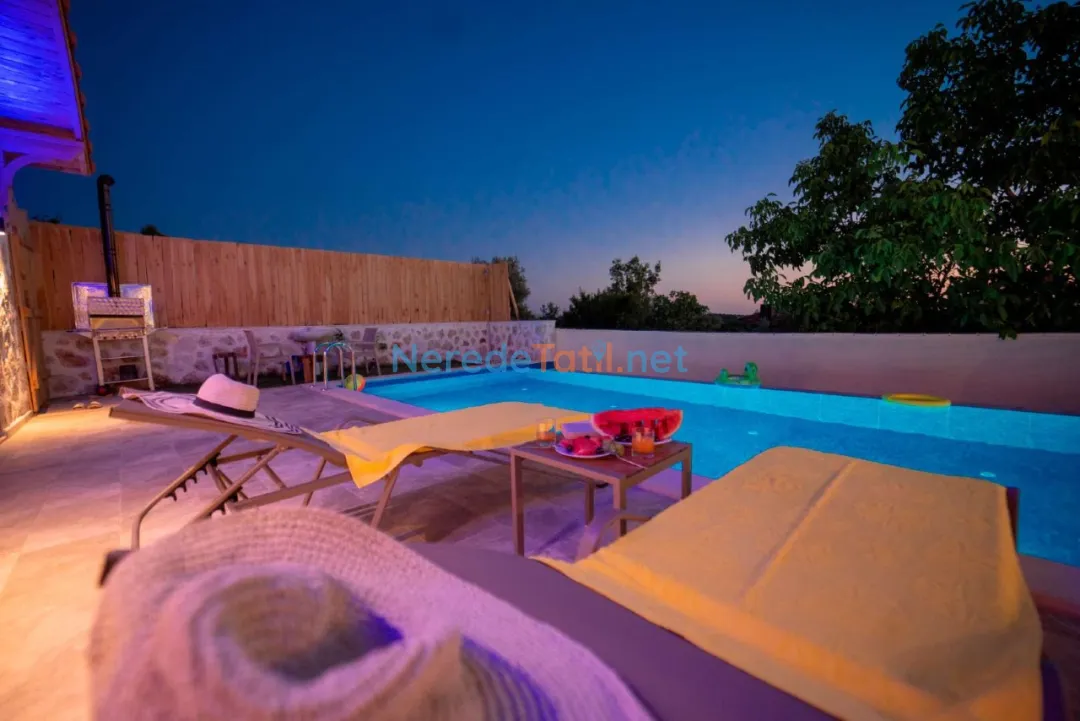 Üzümlü'nün eşsiz doğasında konumlanan bu özel havuzlu villa, balayı çiftleri için ideal bir kaçamak sunar. Villa, korunaklı havuzuyla tam mahremiyet sağlarken, jakuzi keyfiyle romantik anlar yaşatır. Yalnızca iki kişilik kapasitesiyle sakin ve huzurlu bir tatil arayan çiftlere hitap eden bu villa, Üzümlü merkezine sadece 150 metre mesafededir.