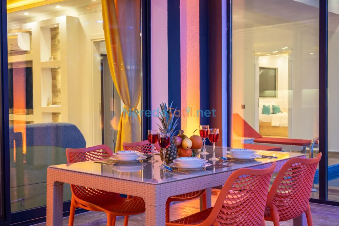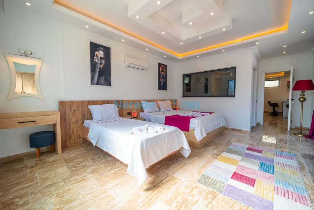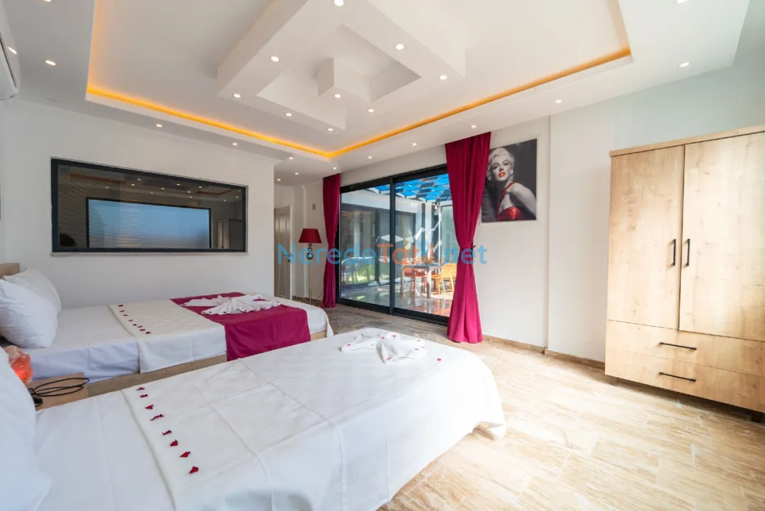 Villada iki yatak odası ve iki banyo bulunmaktadır. Her odada çift kişilik yatak ile rahat bir konaklama sağlanırken, diğer odada tek kişilik yatak seçeneği de sunulmaktadır. Villanın korunaklı havuz alanı, muhafazakar misafirler için de konforlu bir tatil imkanı sunar.
