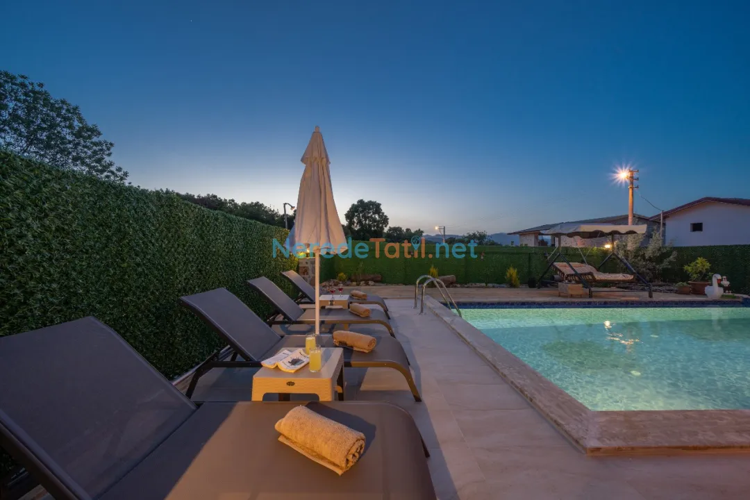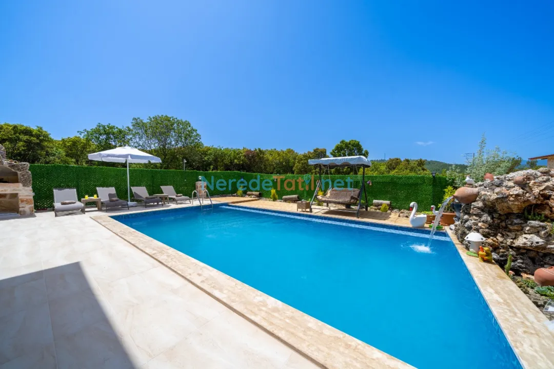 Villanın 3.5 metre eninde, 7 metre boyunda ve 1.5 metre derinliğindeki korunaklı havuzu, sıcak yaz günlerinde serinletici bir rahatlama sunar. Bahçede yer alan BBQ - Mangal alanı, akşamları sevdiklerinizle keyifli anlar geçirmenizi sağlar.