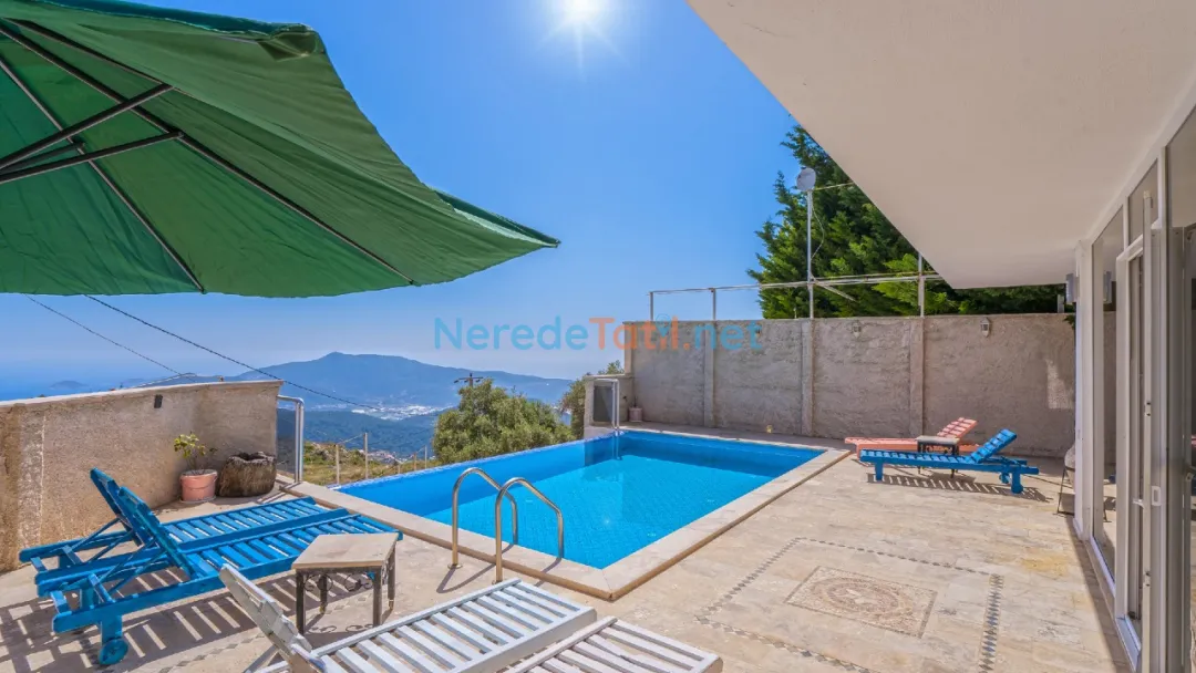 Villa, doğa manzarasına sahip geniş bir bahçe içerisinde yer almakta ve konuklarına 450 cm x 700 cm ölçülerinde özel yüzme havuzu sunmaktadır. Havuzun derinliği ise 150 cm olup, korunaklı yapısı sayesinde gizliliğe önem veren misafirler için idealdir.