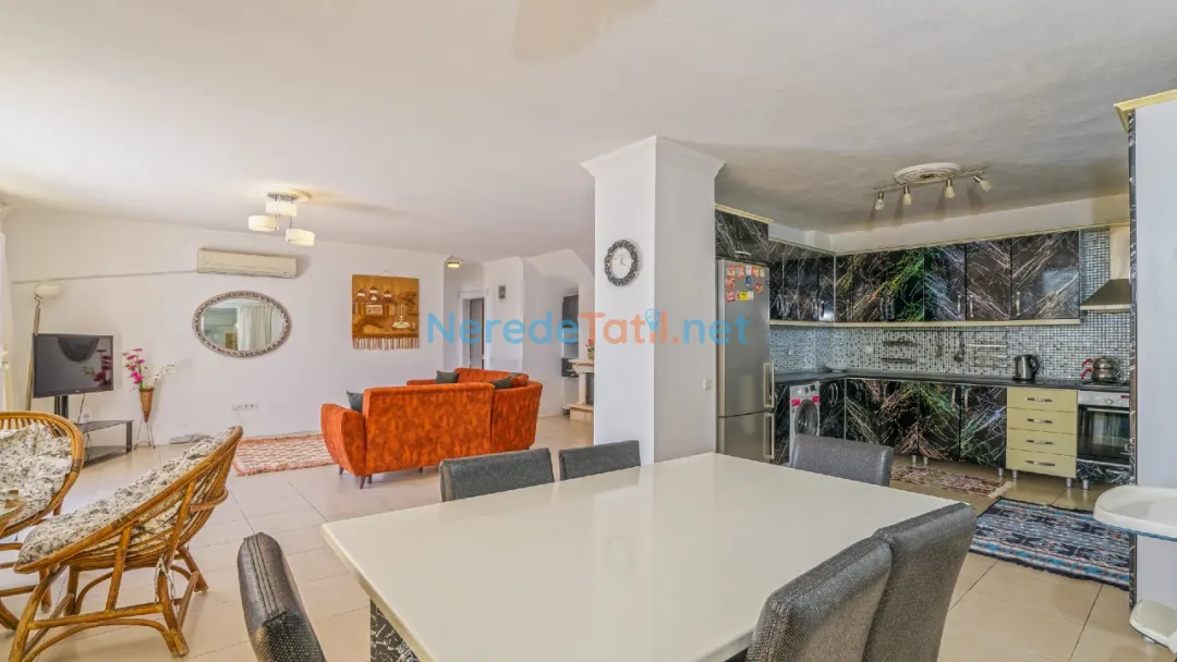 Villanın konumu ise hem doğa ile iç içe hem de merkeze yakın bir tatil arayanlar için idealdir. 9 km mesafedeki plaj, 8 km uzaklıktaki şehir merkezi ve 2 km mesafedeki restoran ve market seçenekleri tatilinizi daha da kolaylaştırıyor.