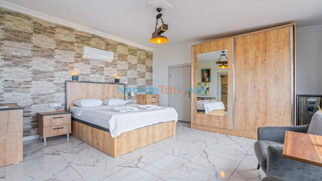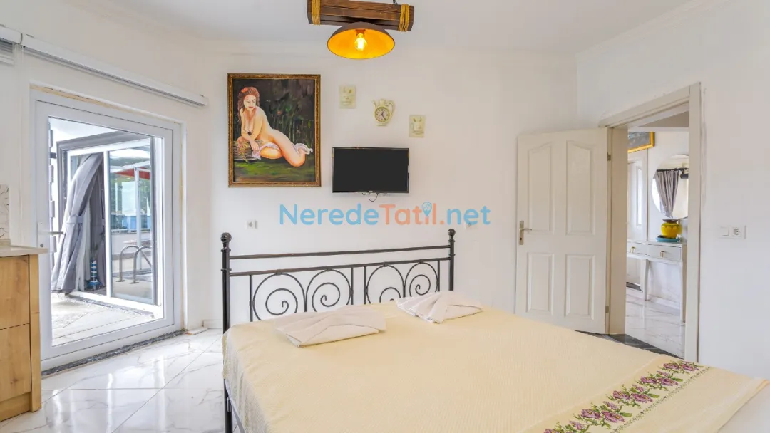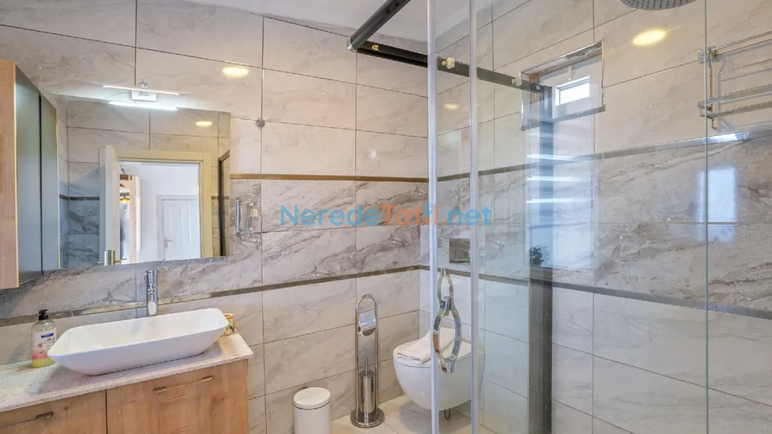 Villada iki yatak odası ve iki banyo bulunmaktadır. Yatak odalarında bir adet çift kişilik yatak ve iki adet tek kişilik yatak yer almaktadır, bu da dört kişilik bir aile veya arkadaş grubu için idealdir. Konforlu bir konaklama sunan bu villa, şehir hayatının stresinden uzaklaşmak isteyenler için mükemmel bir seçimdir.