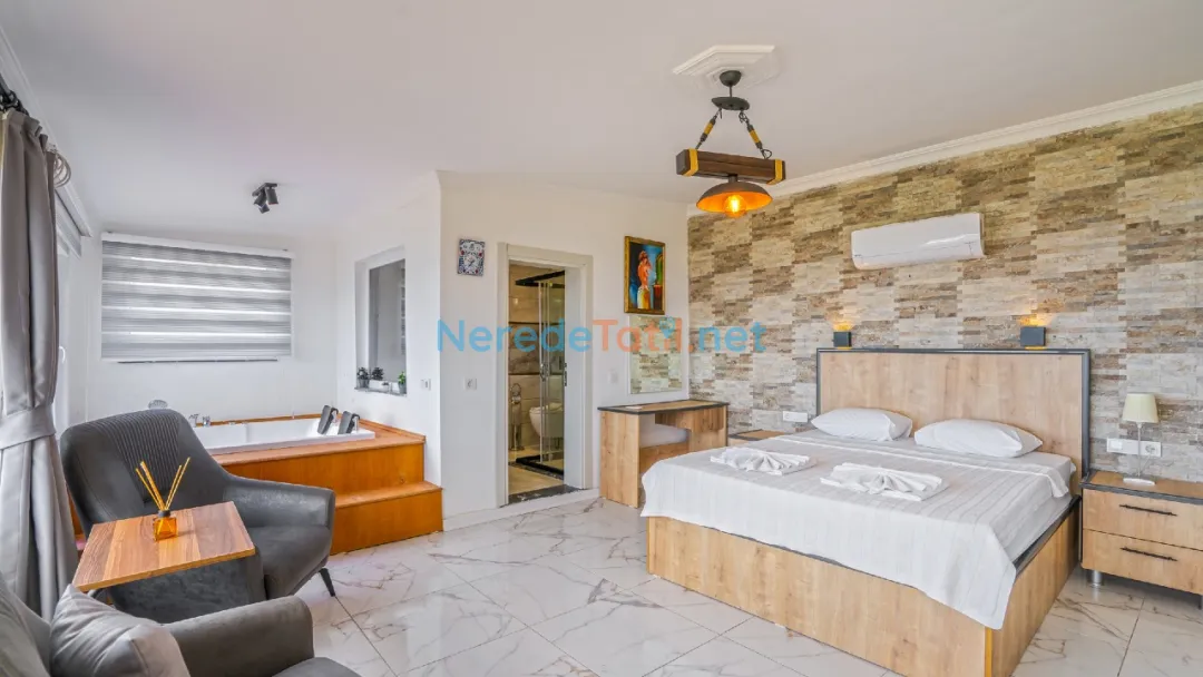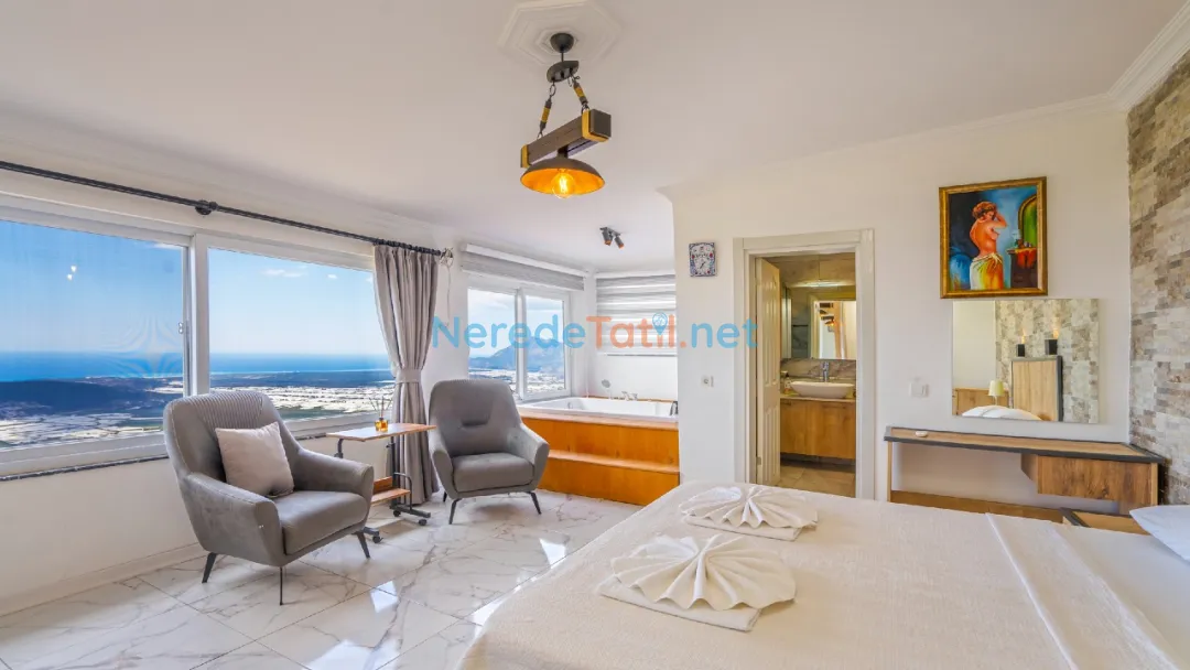 Üzümlü'nün eşsiz doğasında yer alan bu villa, huzur dolu bir tatil için sizleri bekliyor. Hem konforlu hem de doğa ile iç içe bir tatil arayanlar için ideal bir seçenek sunan villa, eşsiz bir kaçamak yapmanıza olanak tanır.