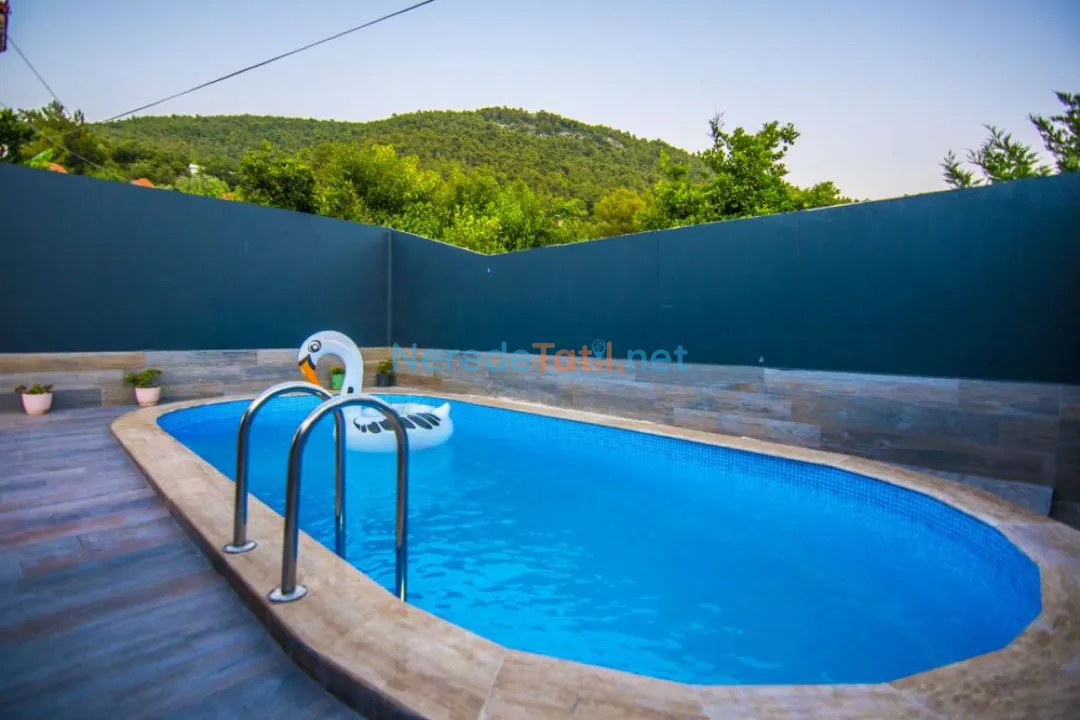 Villanın en dikkat çekici özelliklerinden biri, özel havuzudur. Havuz, 3.80 metre genişliğinde, 9 metre uzunluğunda ve 1.45 metre derinliğindedir; bu özellikleri ile yaz aylarında serinlemek için idealdir. Havuz çevresi korunaklı olup, gizlilik arayan misafirler için mükemmeldir.