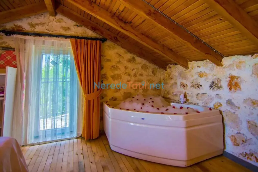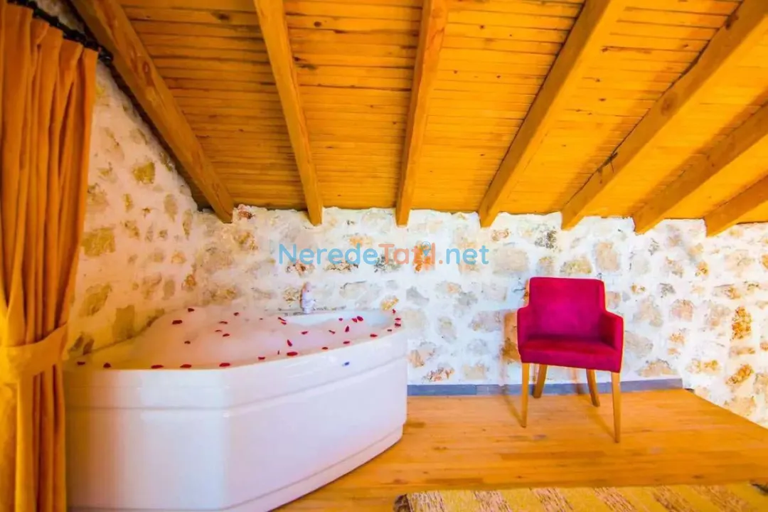 Villamızda ayrıca jakuzi de bulunmaktadır, böylece günün yorgunluğunu atarken doğanın tadını çıkarabilirsiniz. Özel otoparkı sayesinde araçlarınızı güvenle park edebilirsiniz.