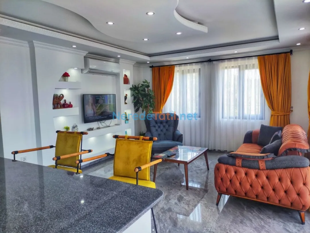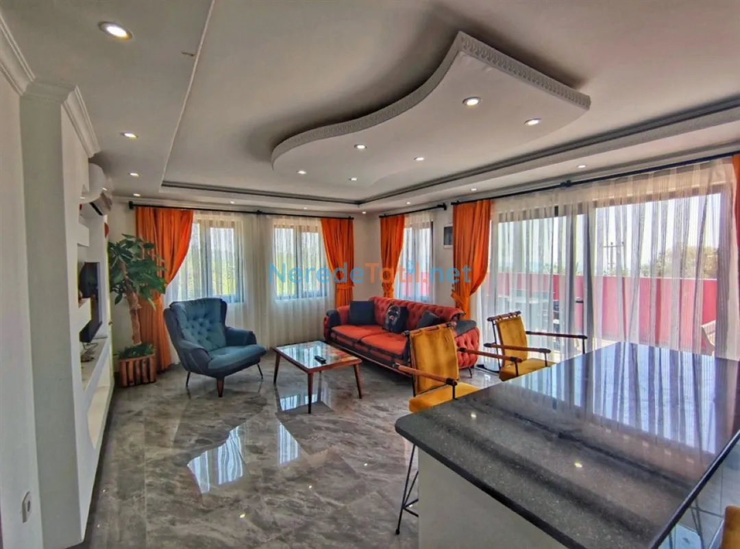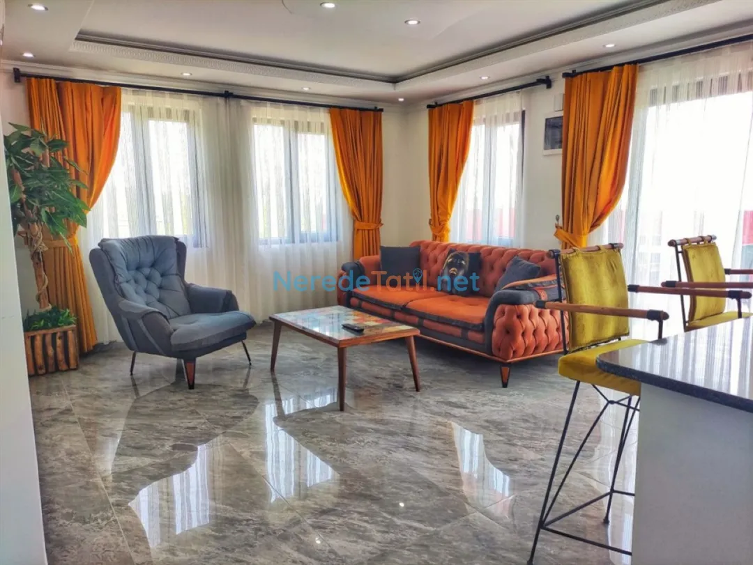 Villanın konumu itibarıyla, market ve restoranlara sadece 200 metre mesafede bulunurken, plaj ve merkeze 8-9 kilometre mesafededir. Havalimanına ise 114 kilometre mesafede yer almaktadır. Üzümlü'nün eşsiz doğasında, bu modern ve konforlu villada unutulmaz bir tatil geçirebilirsiniz.
