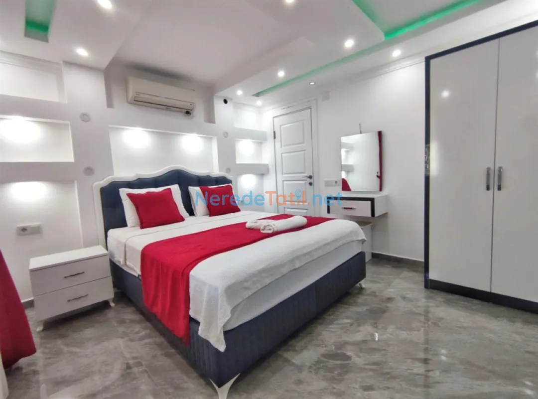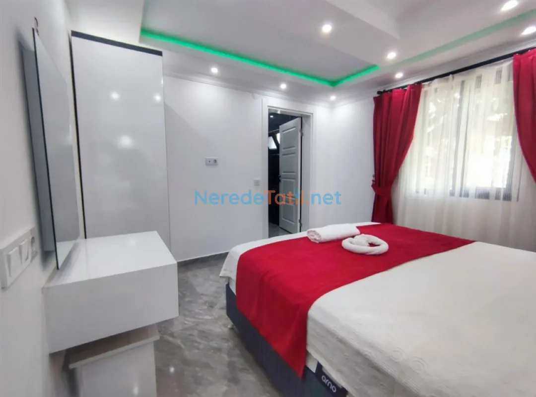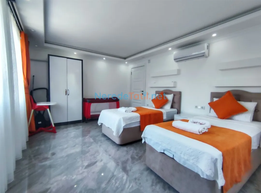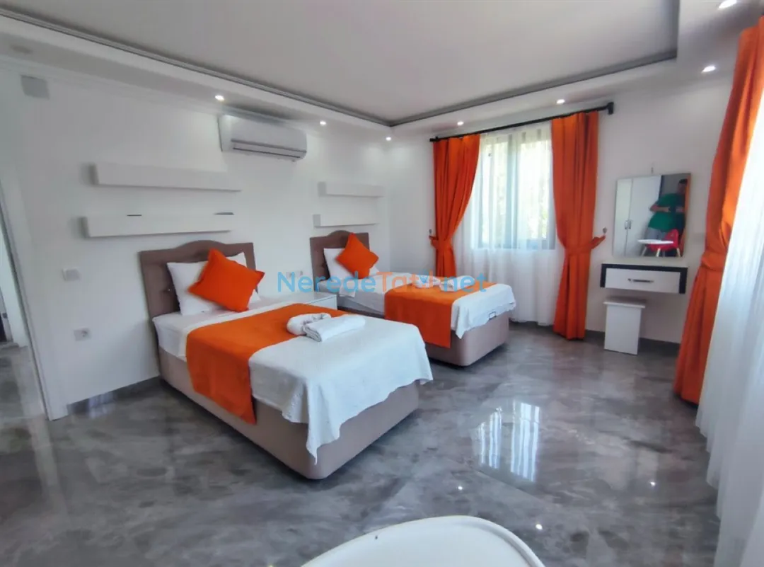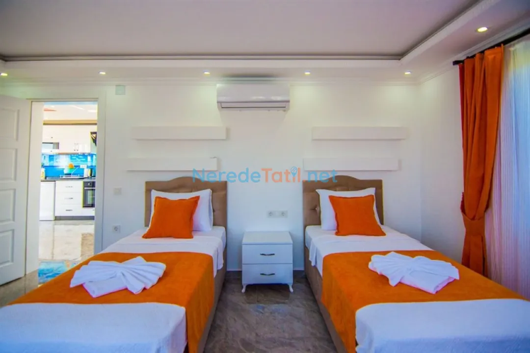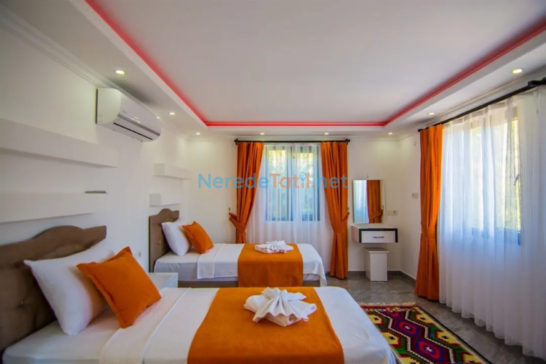 Üzümlü'de yer alan bu lüks villa, doğa manzaralı konumuyla huzurlu bir tatil deneyimi sunuyor. Villanın iki yatak odası ve iki banyosu bulunmaktadır. Bir adet çift kişilik yatak ve iki adet tek kişilik yatak ile dört kişilik konaklama kapasitesi sunan bu villa, özellikle balayı çiftleri için idealdir.