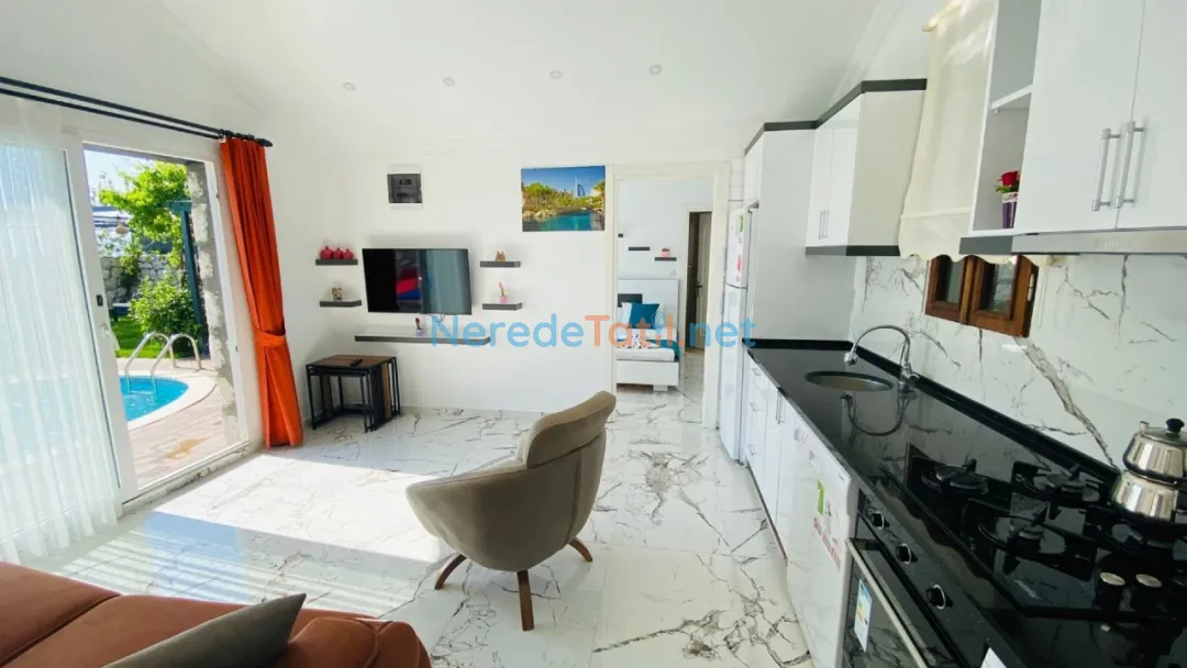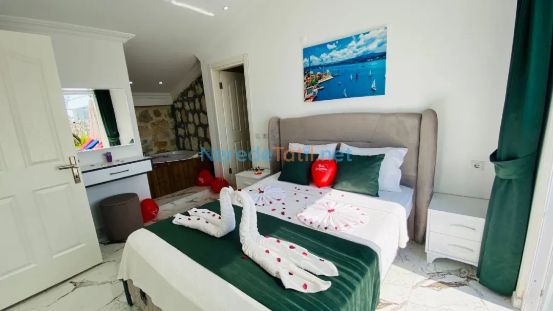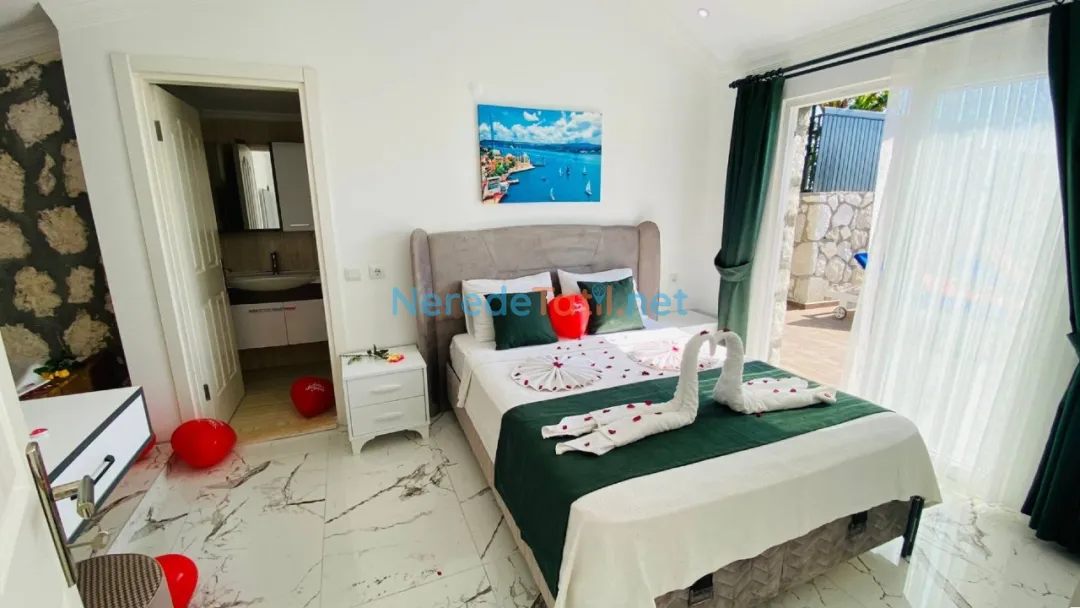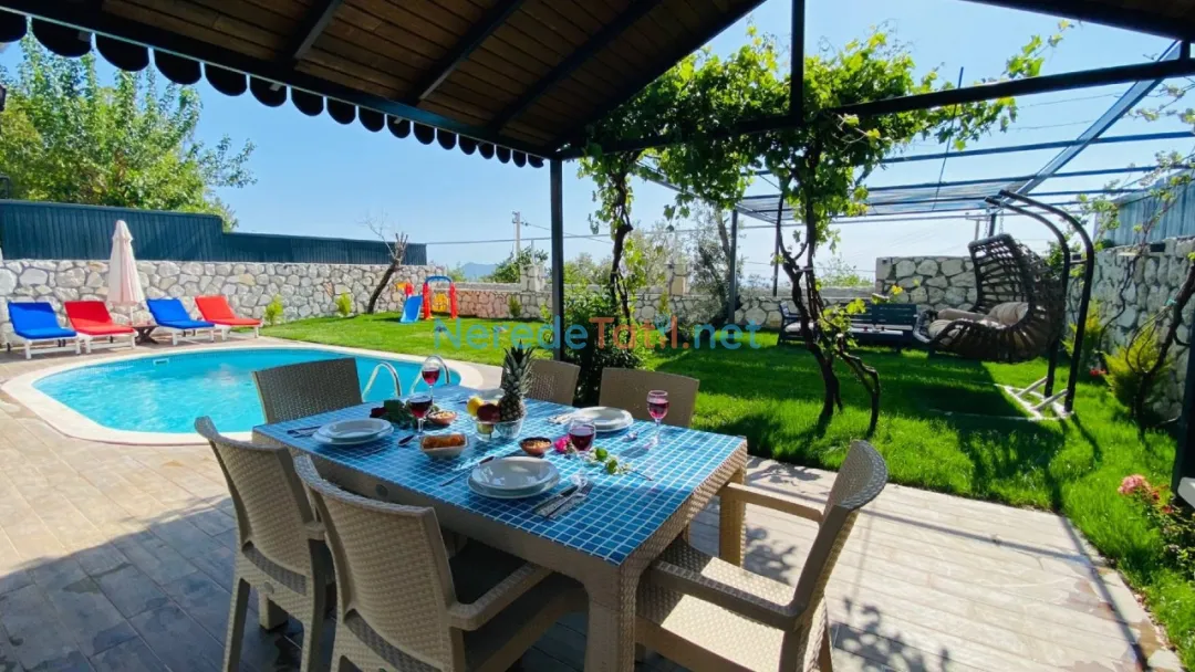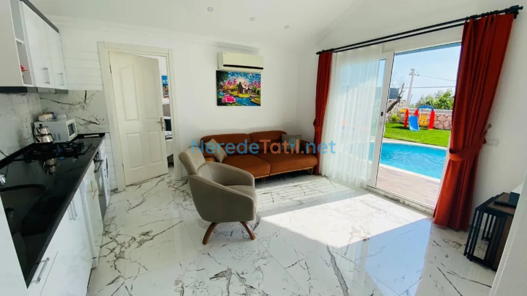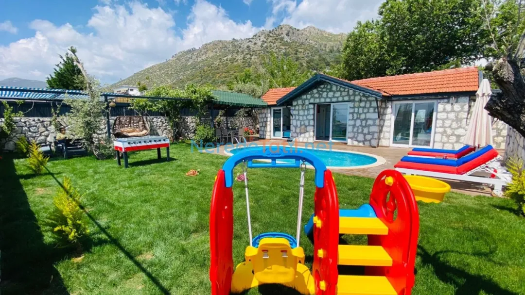 Bahçesi ve doğa manzaralı alanları ile misafirlerine huzur dolu anlar yaşatan villa, aynı zamanda balayı villaları için ideal bir seçenek. Çocuklar için oyun alanı ve langırt gibi eğlenceli aktiviteler de mevcut. Villanın konumu, plaja 10 km, merkeze 9 km, en yakın market ve restorana ise sadece 600 metre mesafede olmasıyla da stratejik bir avantaj sağlıyor.