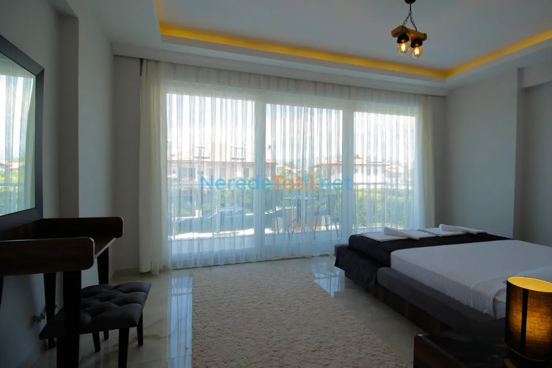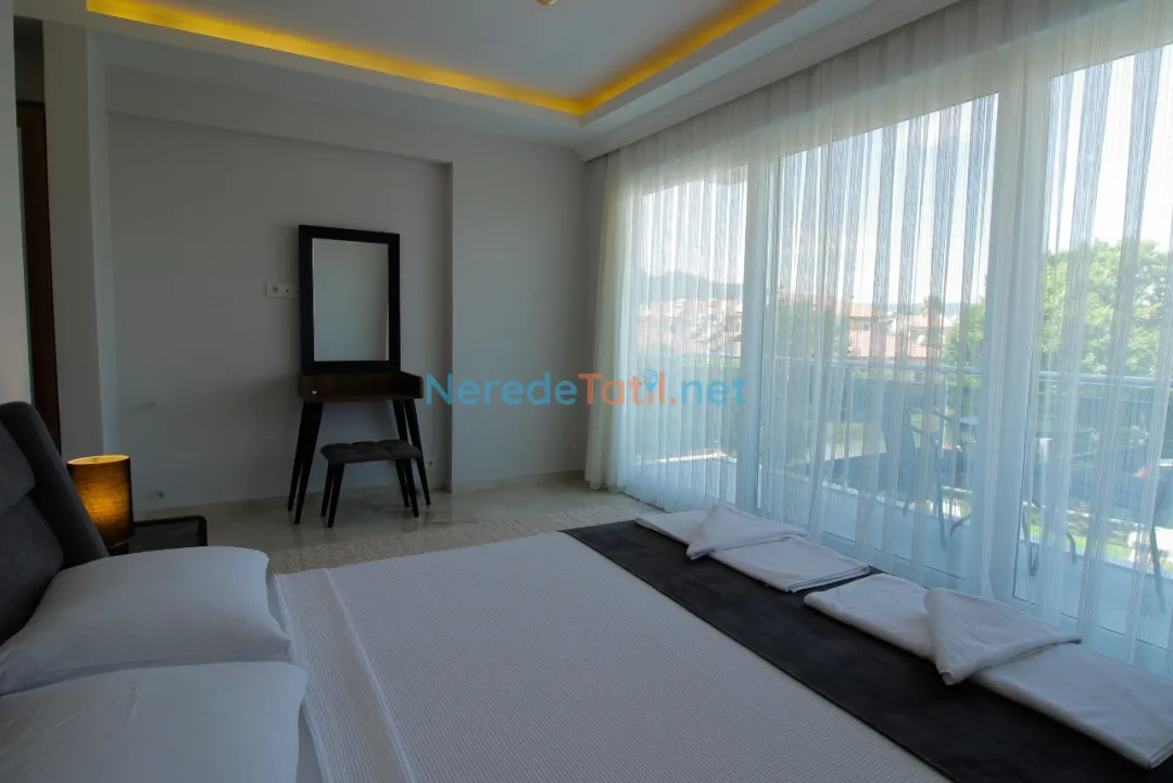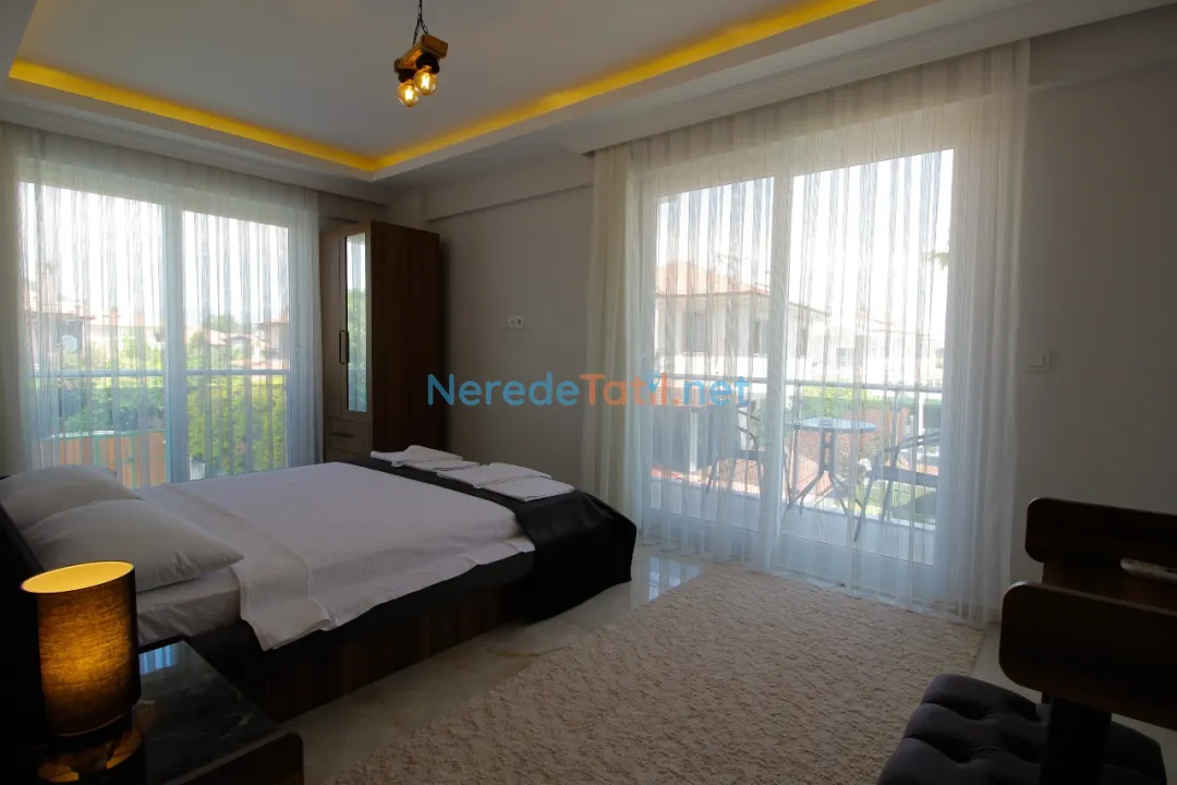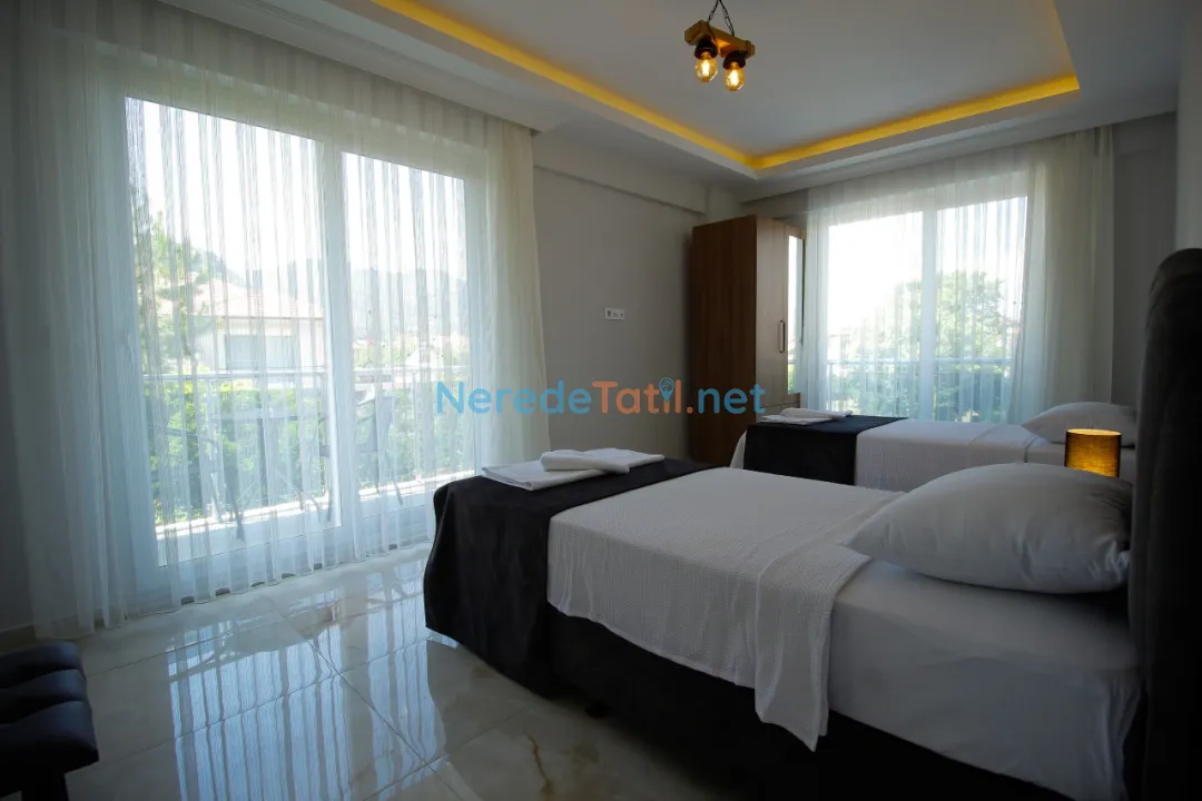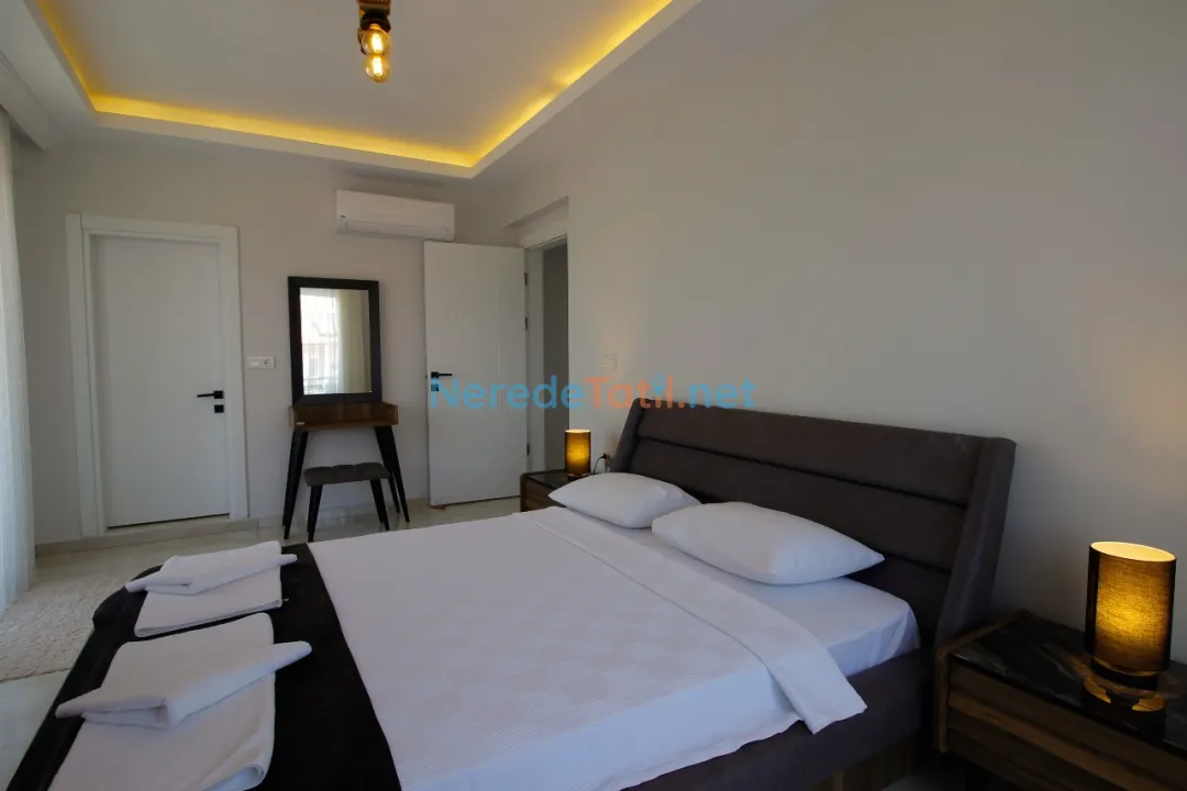 Dalyan'ın eşsiz doğasında yer alan villamız, lüks ve konforu bir arada sunuyor. Villa, 4 yatak odası ve 4 banyosu ile toplamda 8 kişilik konaklama kapasitesine sahiptir. Ayrıca, iki adet çift kişilik ve dört adet tek kişilik yatak mevcuttur, bu da konuklarımıza rahat bir uyku deneyimi sunar. Küçük misafirlerimiz için bir bebek yatağı da bulunmaktadır.