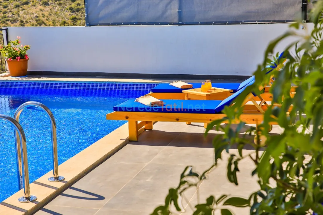 Özel yüzme havuzu, 3.5 metre genişliğinde ve 10 metre uzunluğunda olup, 1.4 metre derinliğindedir. Bu geniş ve ferah havuz, tatiliniz boyunca serinlemeniz ve güneşin tadını çıkarmanız için idealdir. Çocuk havuzu bulunmayan villada, kapalı havuz imkanı da mevcut değildir.