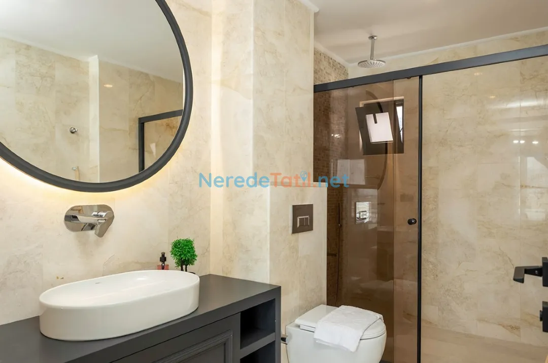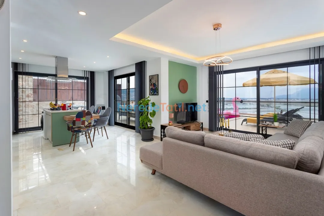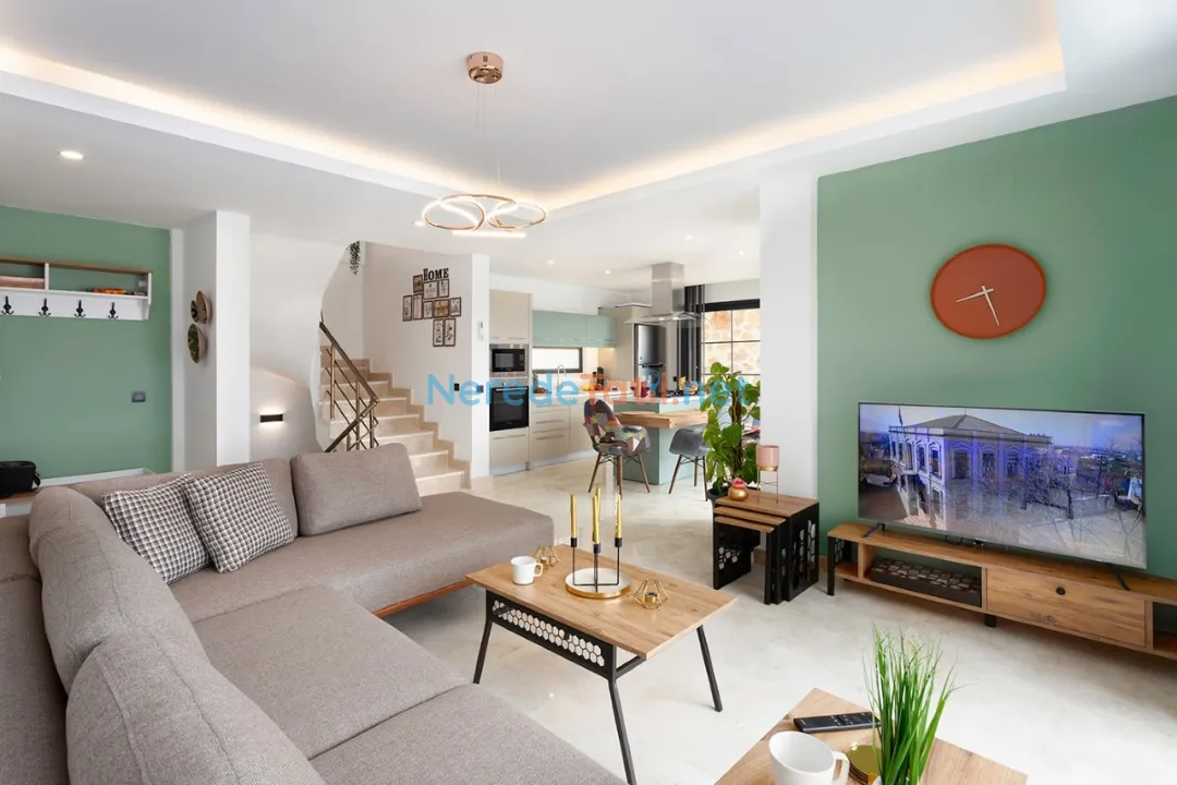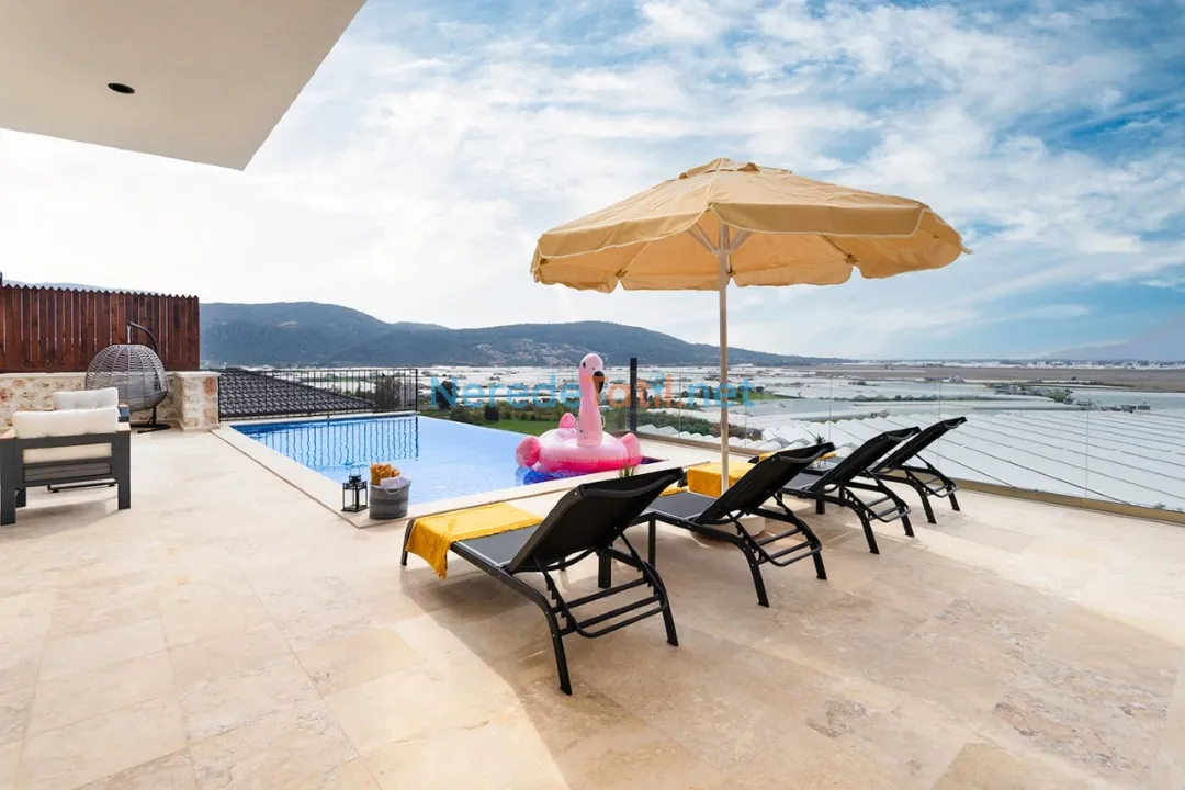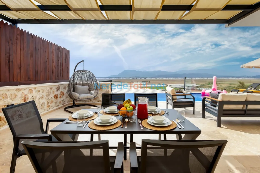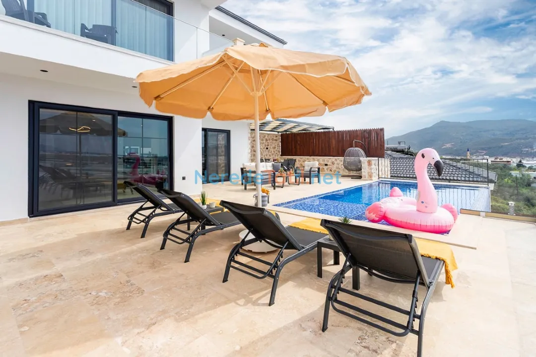Villanın konumu da oldukça avantajlıdır. Plaja 6 km, merkeze ve markete 2 km mesafede yer alırken, havalimanına sadece 12 km uzaklıktadır. Bu sayede hem doğanın hem de şehir yaşamının tadını çıkarabilirsiniz.