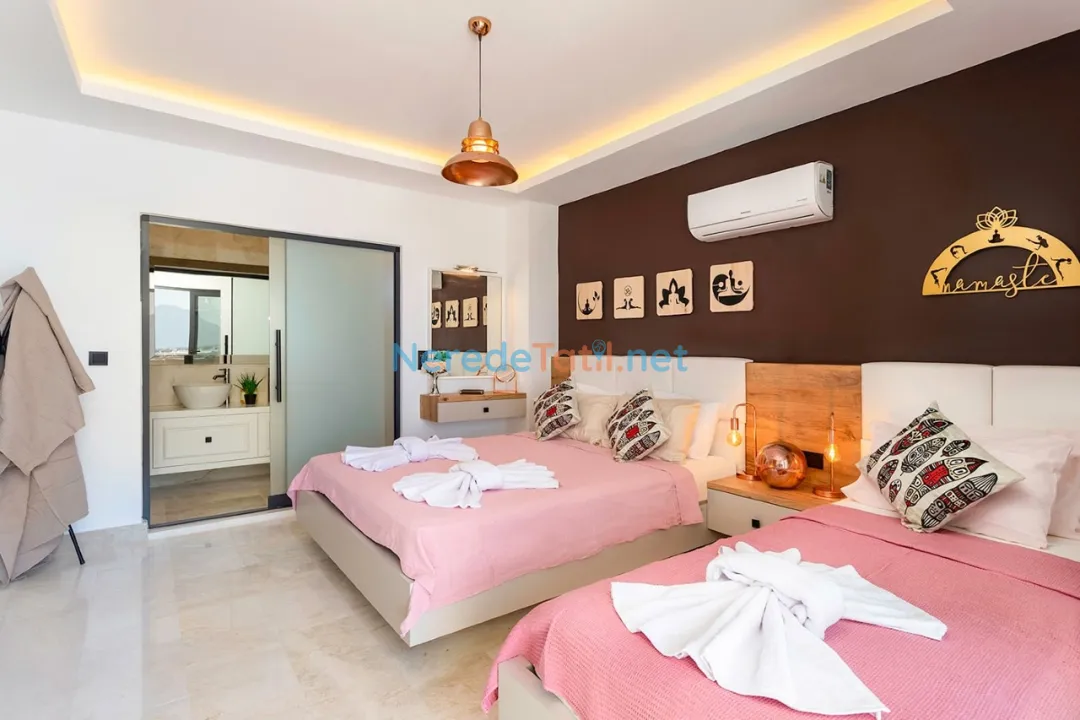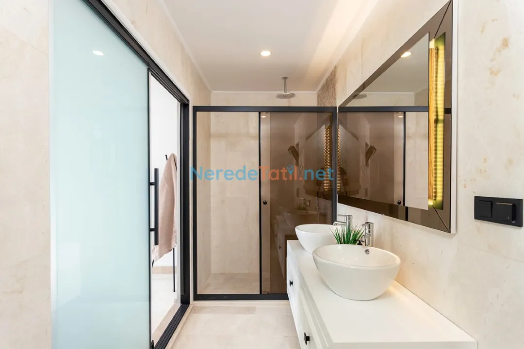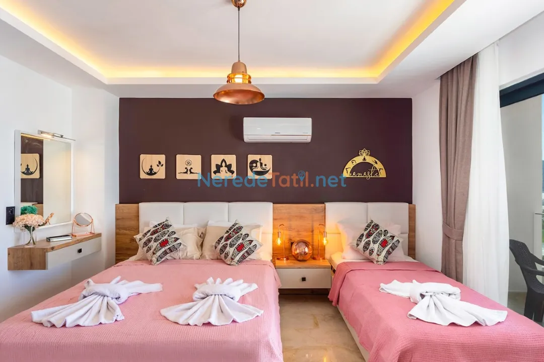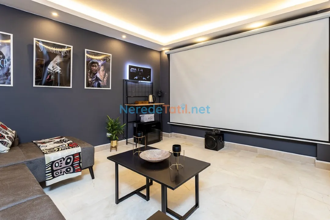 Villanın iç mekanında bulunan jakuzi, stresi geride bırakıp tatilin tadını çıkarmanız için harika bir fırsat sunar. Ayrıca, eğlenceli vakit geçirebilmeniz için masa tenisi oyunu ve bir sinema salonu bulunmaktadır. Villanın kapsamlı iç donanımı arasında saç kurutma makinesi ve ütü gibi günlük kullanım ihtiyaçlarınızı karşılayacak detaylar da eksik edilmemiştir.