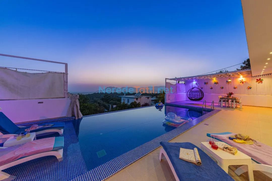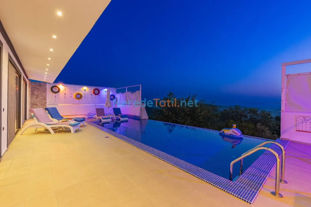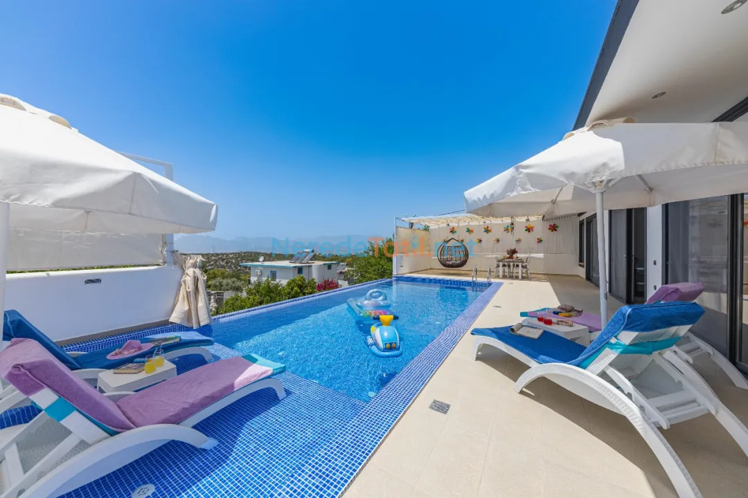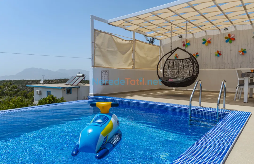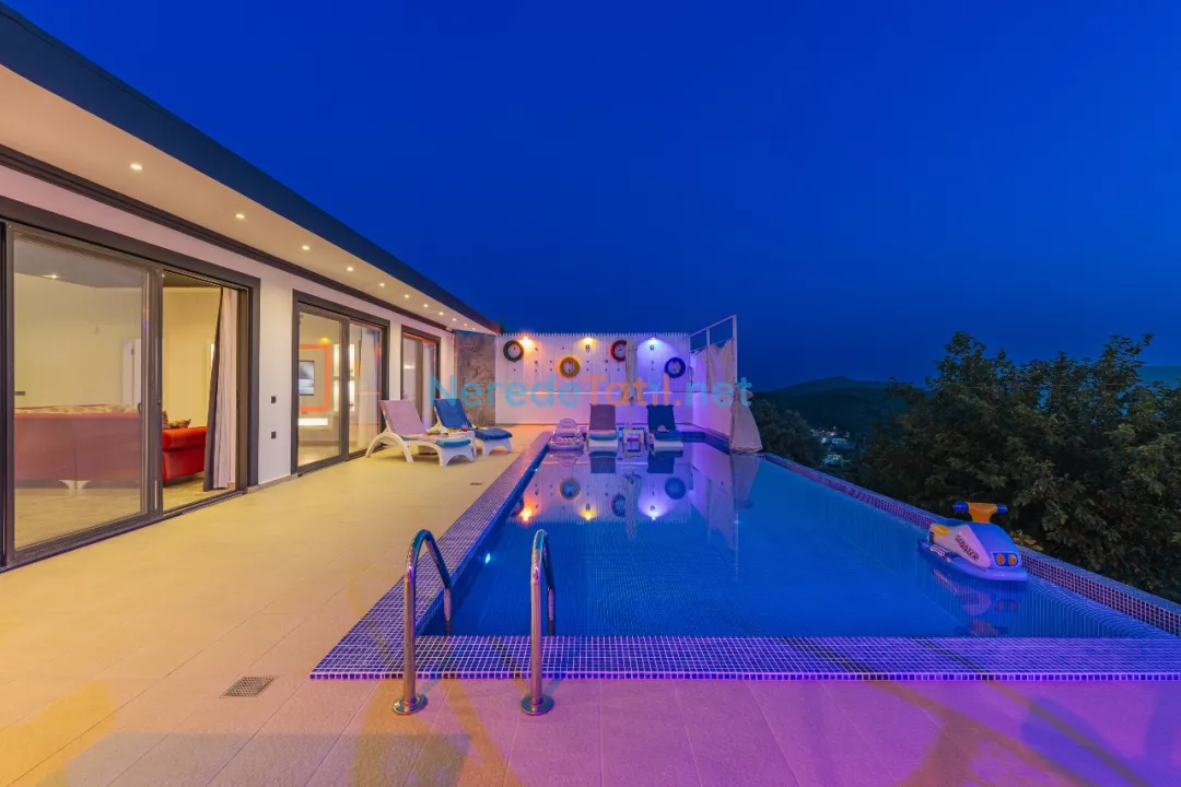 Üzümlü'de konumlanmış bu lüks villa, doğa ile iç içe bir tatil deneyimi sunuyor. Villanın özel yüzme havuzu genişliği 3.75 metre, uzunluğu 8.00 metre ve derinliği 1.45 metre olarak tasarlanmıştır ve korunaklı yapısıyla mahremiyet sağlıyor. Ayrıca çocuklar için de 1.25 metre genişliğinde, 2.00 metre uzunluğunda ve 0.37 metre derinliğinde bir çocuk havuzu bulunmaktadır.
