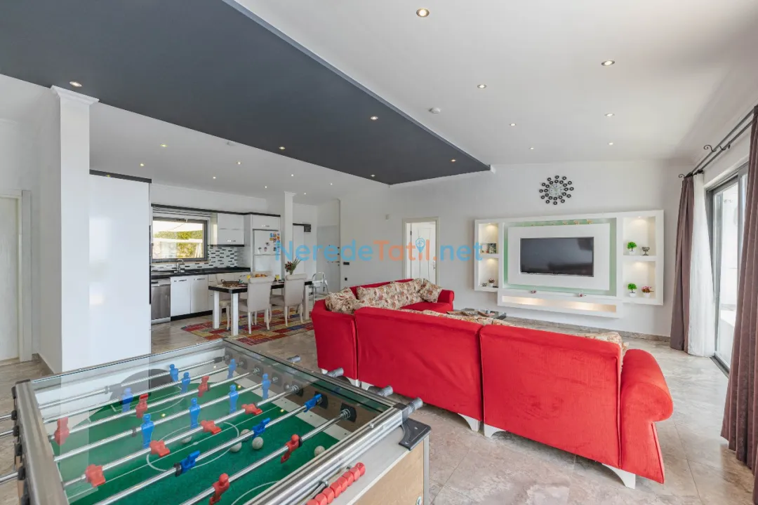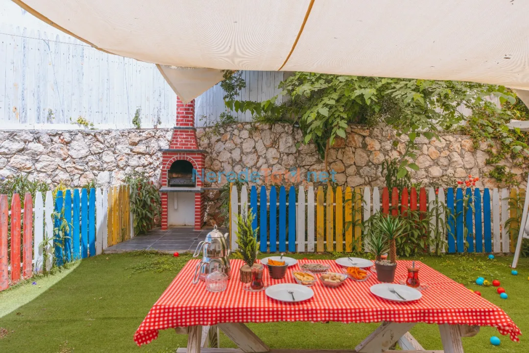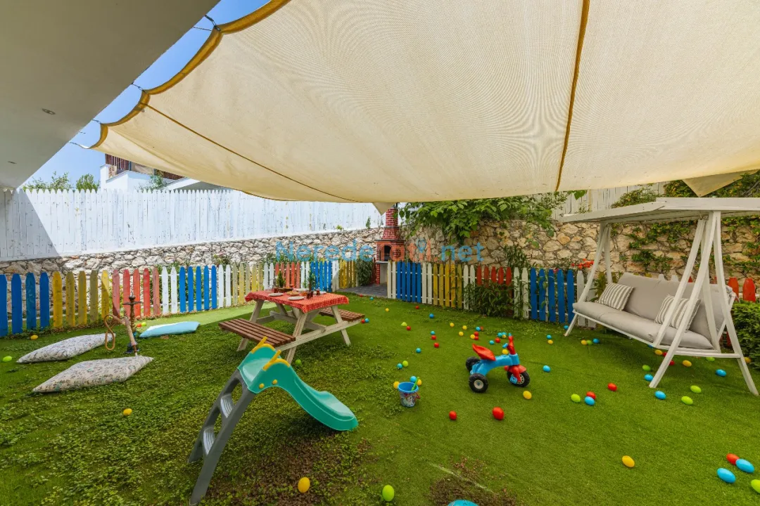Doğa manzaralı bahçesinde BBQ - Mangal keyfi yapabilir, langırt ve oyun alanı ile eğlenceli vakit geçirebilirsiniz. Ayrıca, villada bulunan jakuzi ile günün yorgunluğunu atabilirsiniz. Spor severler için spor aletleri de unutulmamış.