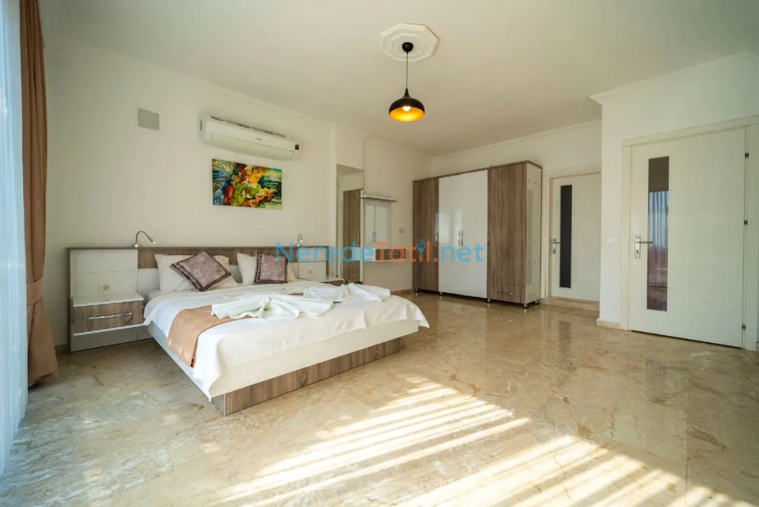 Villamızda toplam beş yatak odası ve beş banyo bulunmaktadır. Üç çift kişilik ve dört tek kişilik yatak kapasitesi, 10 kişiye kadar konforlu konaklama imkanı sunar. Jakuzili banyoda kendinizi yenileyebilir, BBQ - Mangal keyfi ile lezzet dolu akşamlar geçirebilirsiniz.