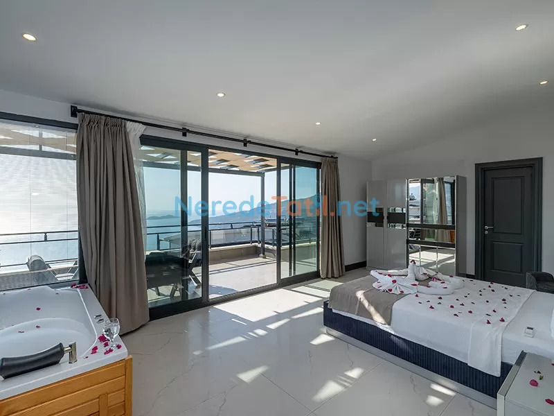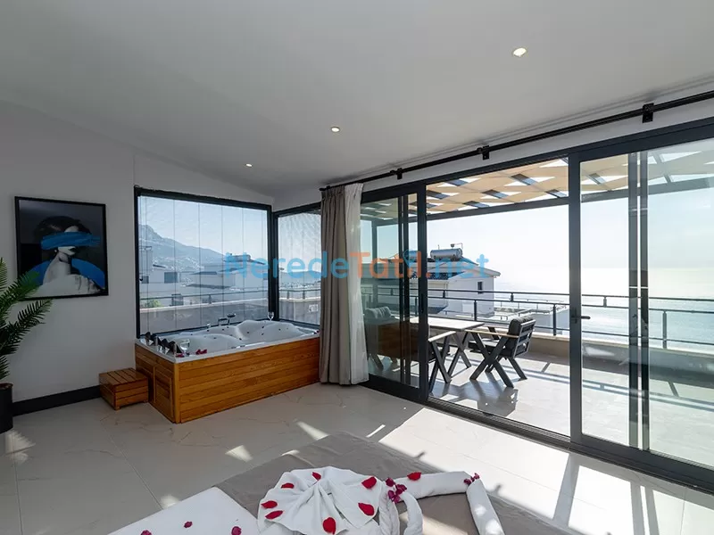 Kalkan'da Deniz Manzaralı, Lüks ve Jakuzili Villa
