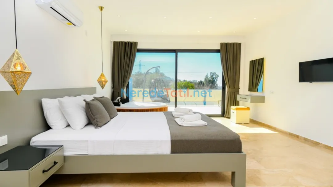 İslamlar bölgesinde yer alan bu özel havuzlu villa, balayı çiftleri için ideal bir konaklama seçeneğidir. Villa, 2 kişi kapasitesi ile samimi bir tatil ortamı sunmaktadır. Jakuzili ve korunaklı havuz özellikleriyle dikkat çeken bu villa, tatiliniz boyunca mahremiyetinizi korurken rahatlamanızı sağlar.