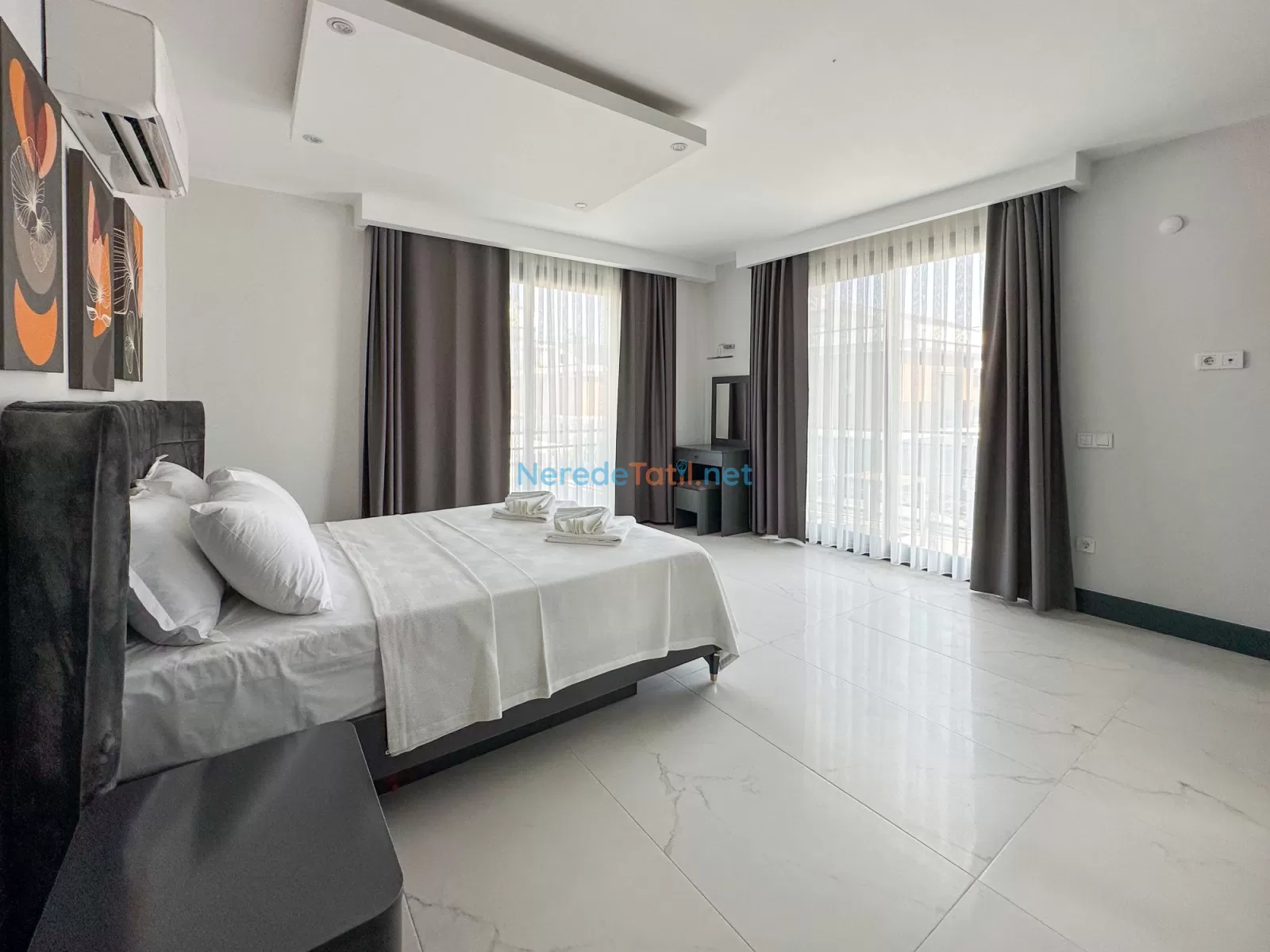 Fethiye'nin büyüleyici doğasında konumlanmış bu villa, 8 kişilik konaklama kapasitesiyle kalabalık aileler ve gruplar için mükemmel bir tatil imkanı sunuyor. Villada dört yatak odası ve dört banyo bulunmaktadır. Yatak odalarında üç çift kişilik yatak ve iki tek kişilik yatak bulunmaktadır, bu da konforlu bir uyku deneyimi sağlar.