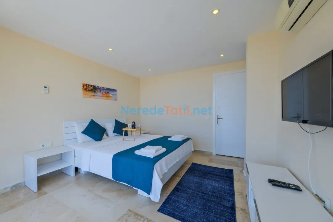 Kızıltaş'ta konumlanan bu lüks villa, eşsiz deniz manzarası ve modern olanakları ile unutulmaz bir tatil deneyimi sunuyor. Villada dört yatak odası ve her biri özel banyolu odalar bulunmaktadır. Üç adet çift kişilik ve iki adet tek kişilik yatak ile toplamda sekiz kişiye kadar konaklama imkânı sunar.