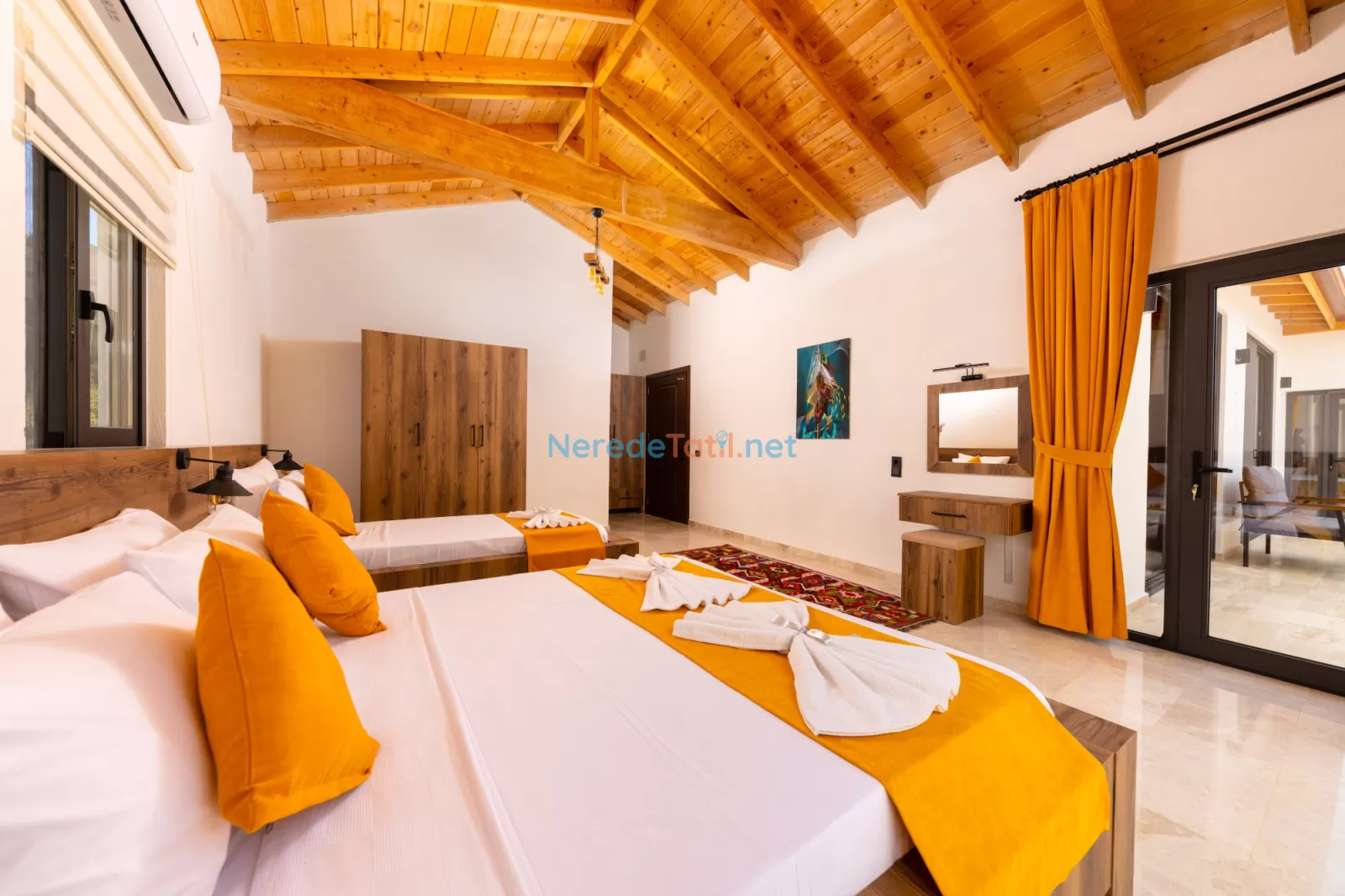 Sarıbelen'in doğal güzellikleri içinde yer alan bu villa, misafirlerine 5 kişilik konforlu bir konaklama sunuyor. Villada iki yatak odası ve iki banyo bulunmakta olup, yatak odalarında iki çift kişilik ve bir tek kişilik yatak mevcuttur. Villanın geniş yüzme havuzu 8 metre uzunluğunda ve 4 metre genişliğinde olup, derinliği 1.55 metredir. Bu özellikleriyle havuz, hem serinletici hem de rahatlatıcı bir deneyim sunar.