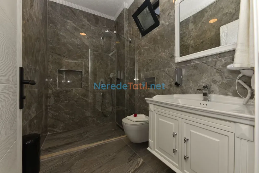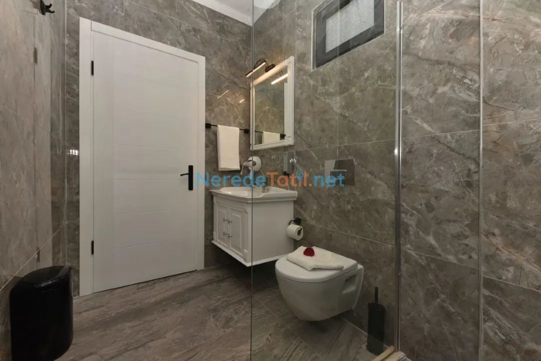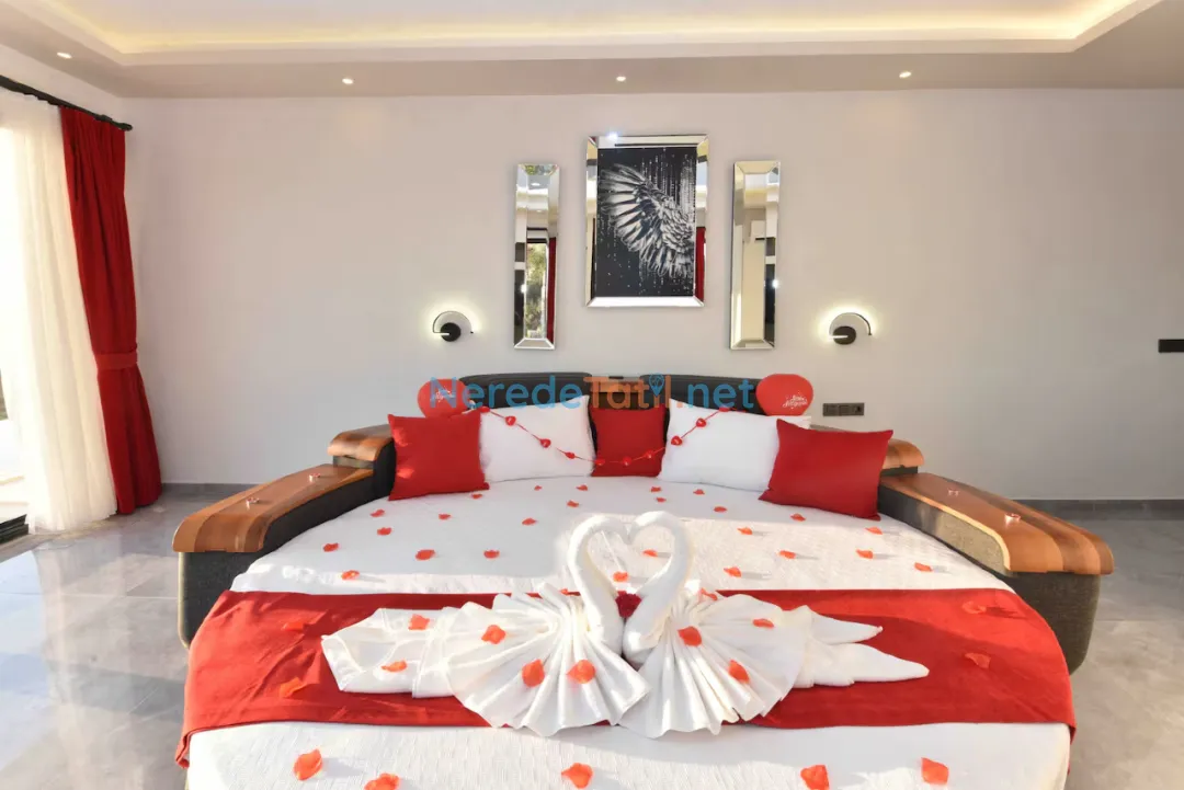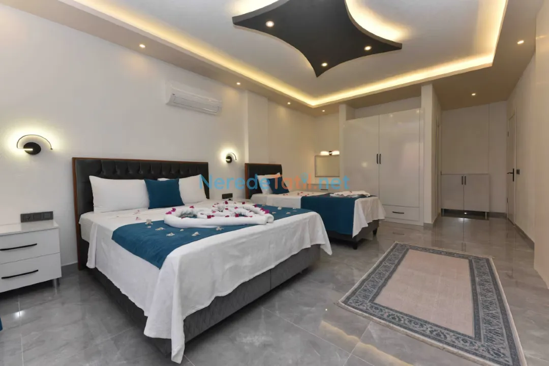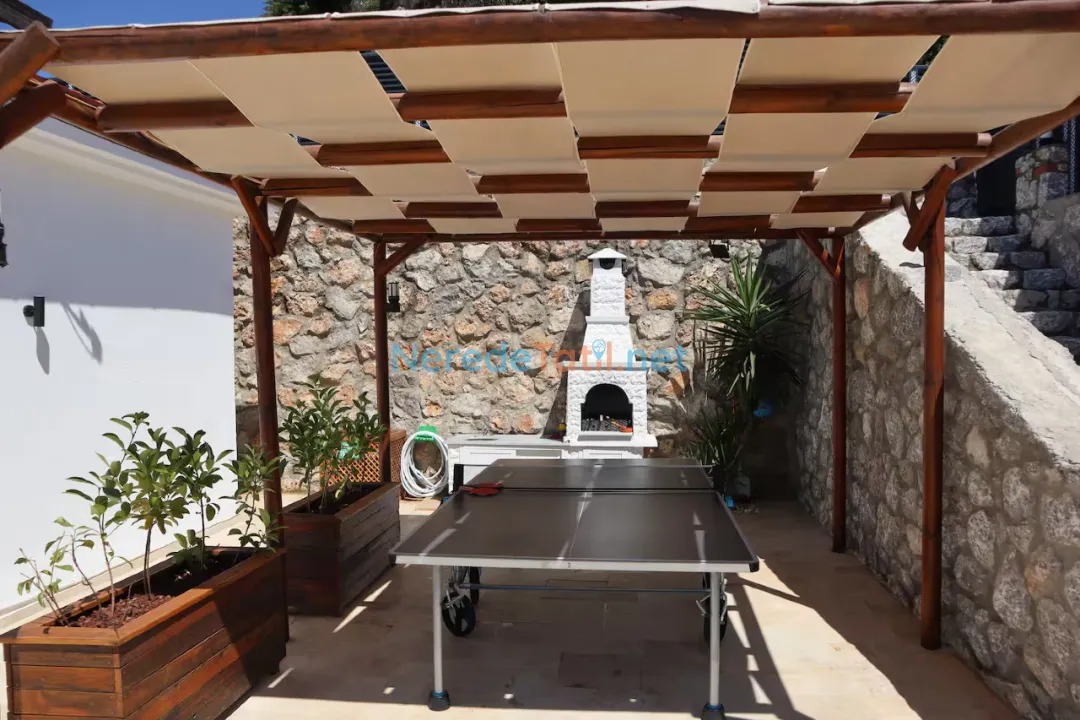 Villa, iki adet çift kişilik yatak ve bir adet tek kişilik yatakla toplamda 5 kişilik konaklama kapasitesine sahiptir. İki banyosu sayesinde konforlu bir konaklama sunar. Geniş bahçesinde BBQ - Mangal yapabilir, sevdiklerinizle keyifli vakit geçirebilirsiniz.