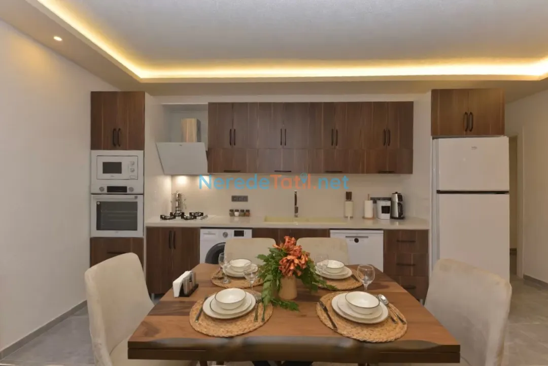 Villanın çevresinde ihtiyaçlarınızı karşılayabileceğiniz market ve restoranlar 1500 metre mesafededir. Ayrıca, plaja sadece 2 kilometre mesafede olup deniz keyfini doyasıya yaşayabilirsiniz. Söğüt'ün huzur dolu atmosferinde, muhafazakar ve balayı çiftleri için de özel bir deneyim sunan bu villa, unutulmaz anılar biriktirmeniz için sizi bekliyor.